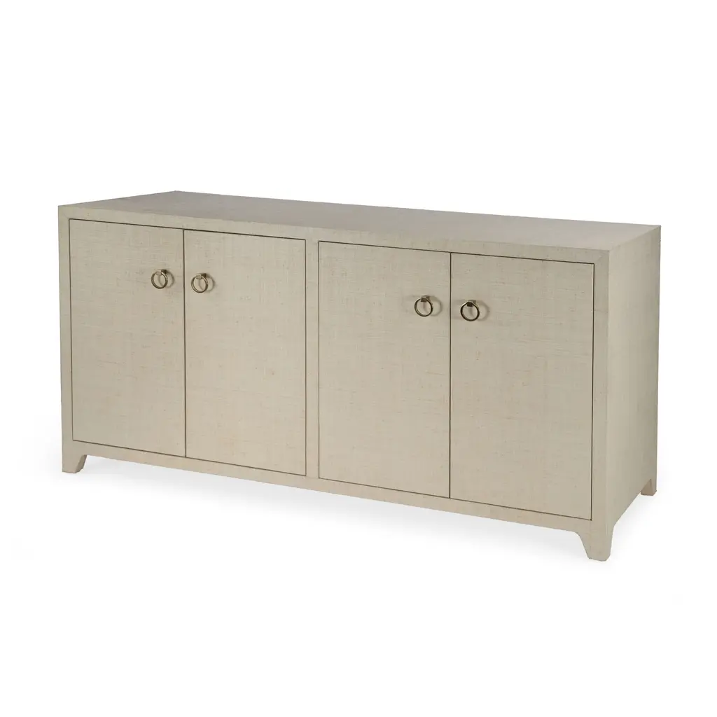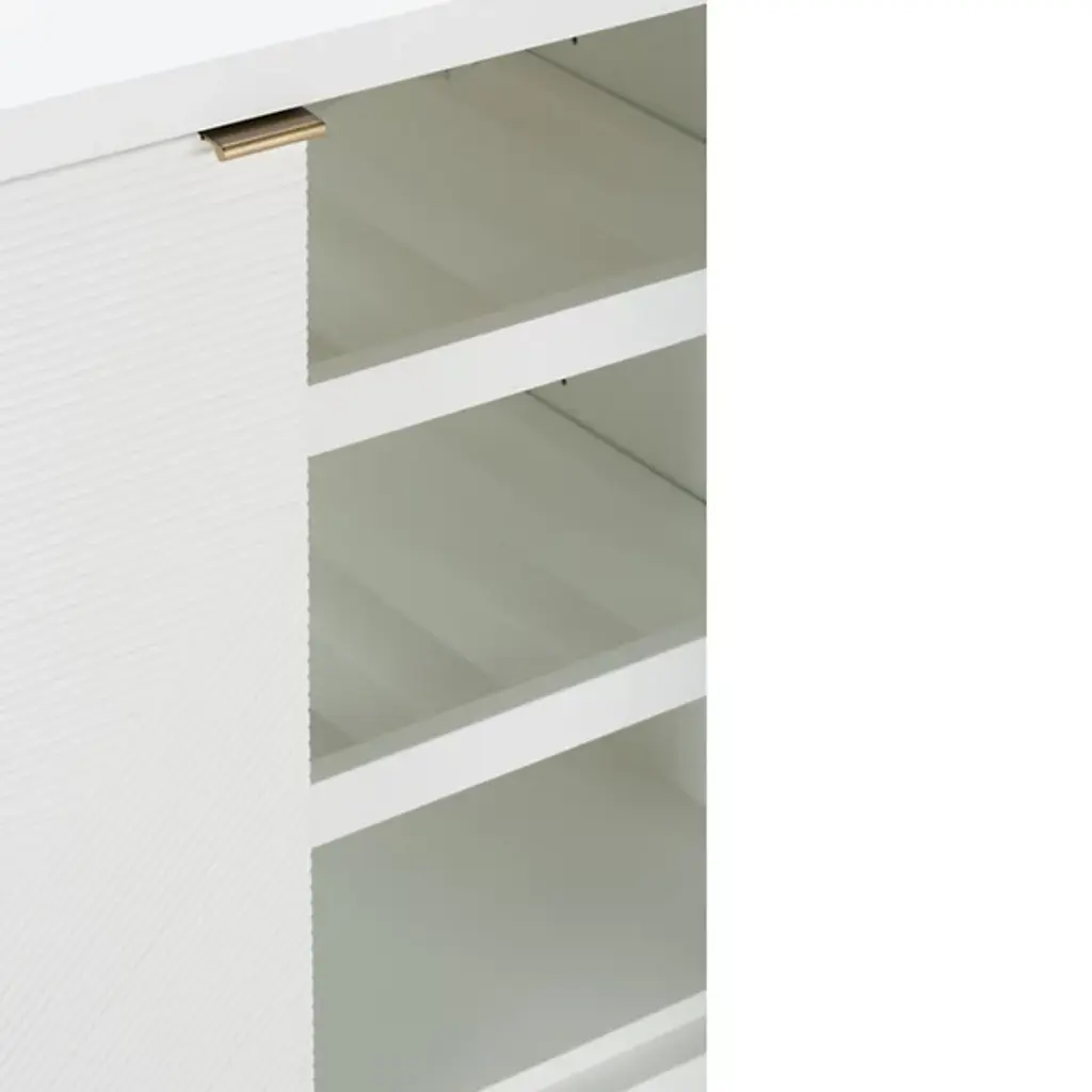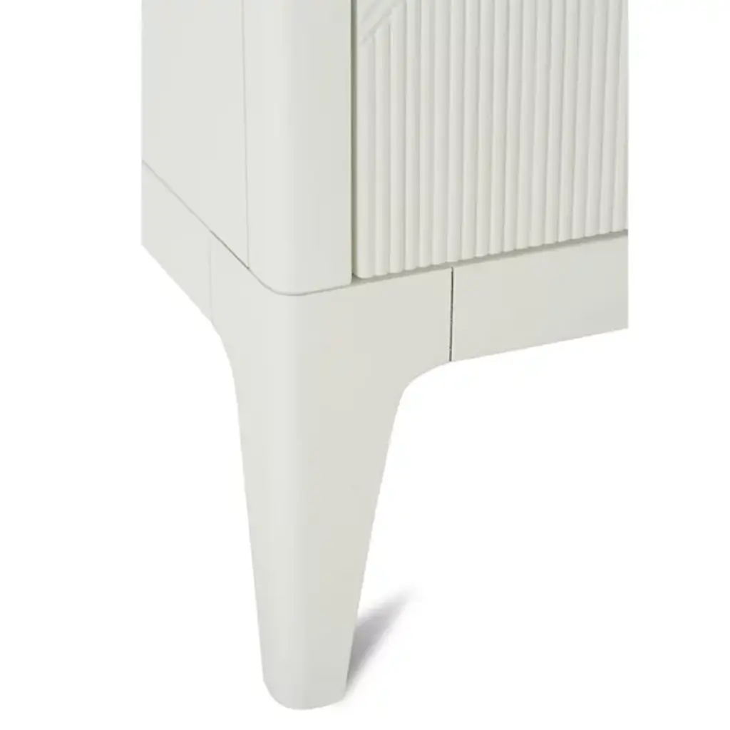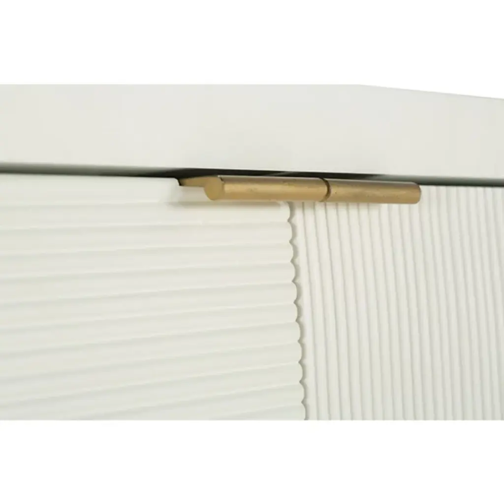 The Nicco Credenza from Rowe Furniture exemplifies contemporary style with its brushed brass tab hardware and refined design. Featuring soft-close hinges and a single interior drawer, it offers both functionality and elegance. Reversible grooved shelves are adjustable and stylish, providing versatile storage options, while floor glides offer stability and easy relocation. The credenza combines modern aesthetics with practical features, making it a sophisticated addition to any room.