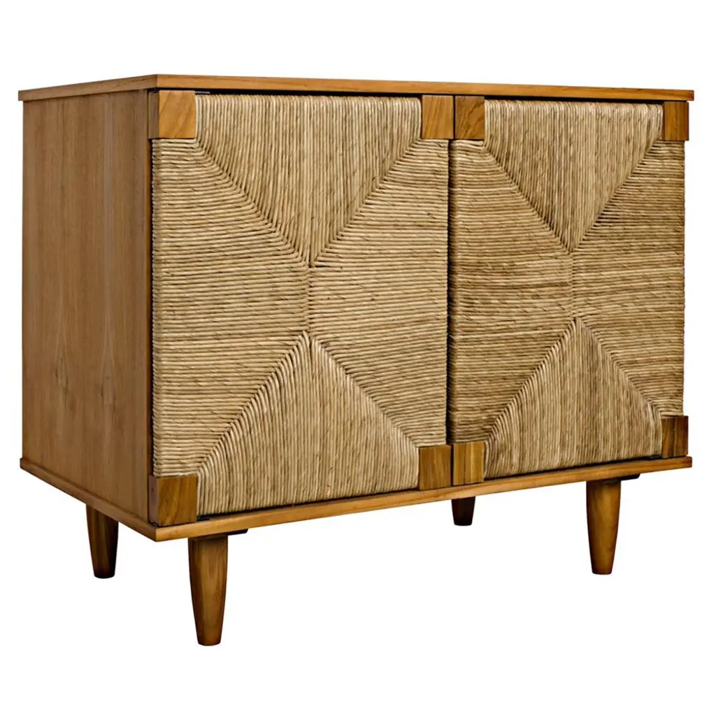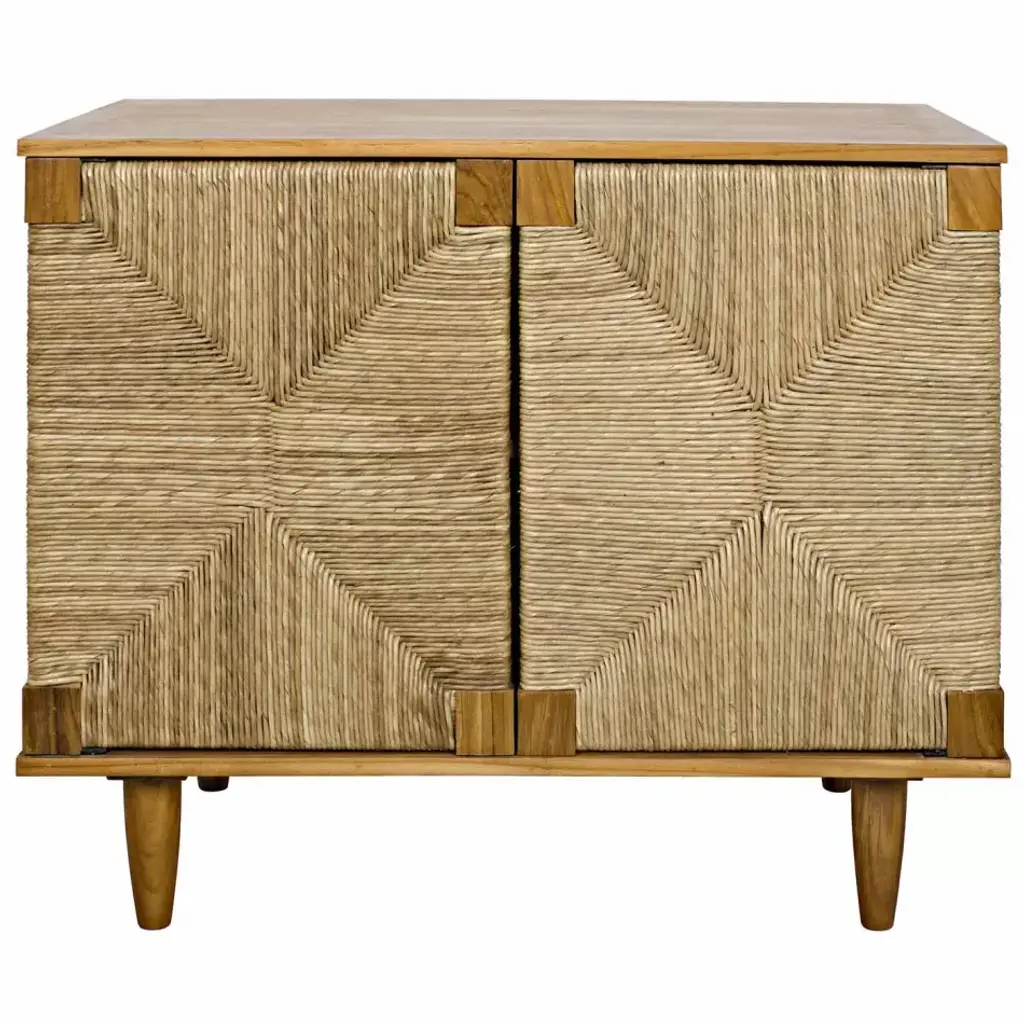Nivara Coastal Beach Brown Teak Wood Frame Natural Seagrass 2-Door Sideboard