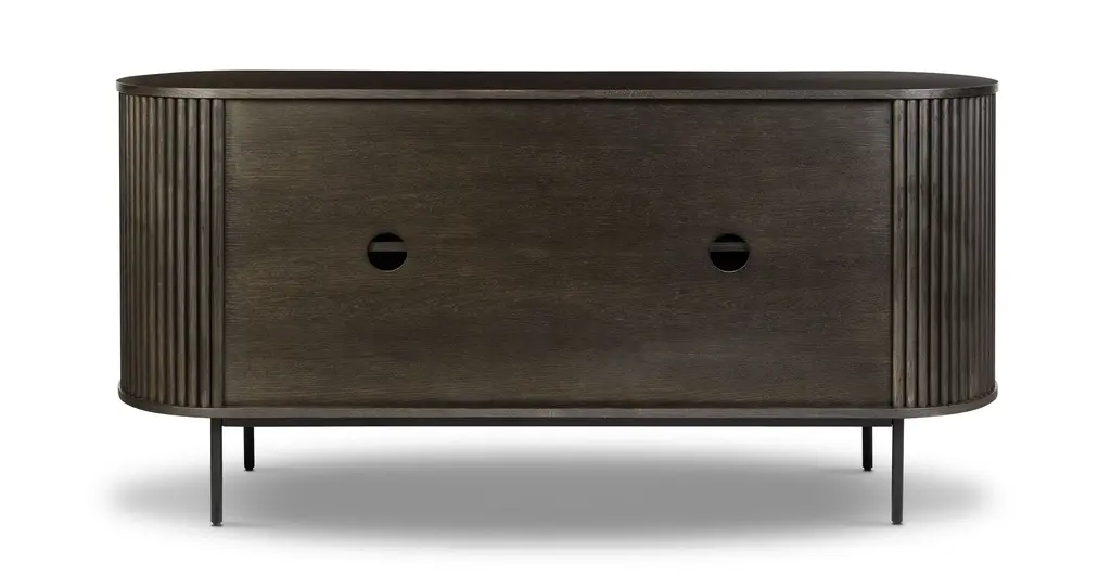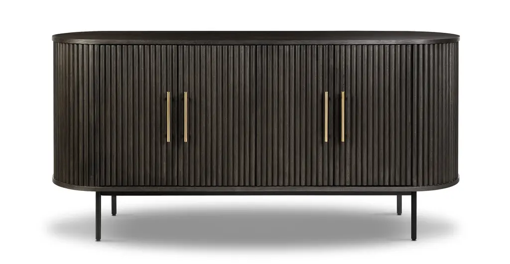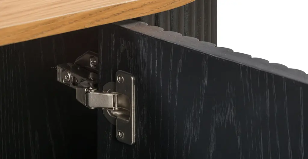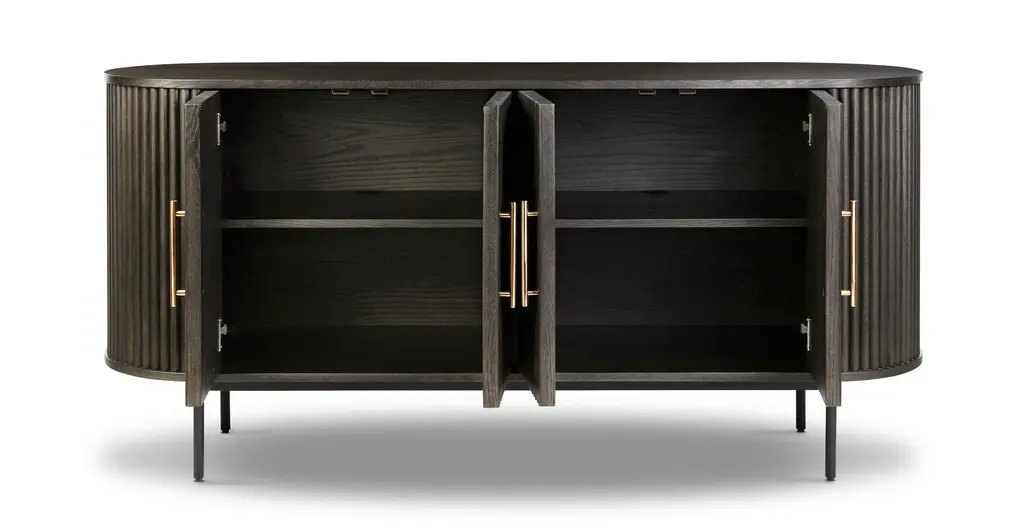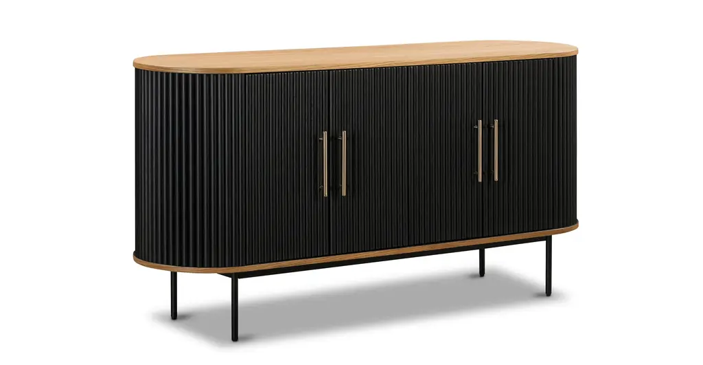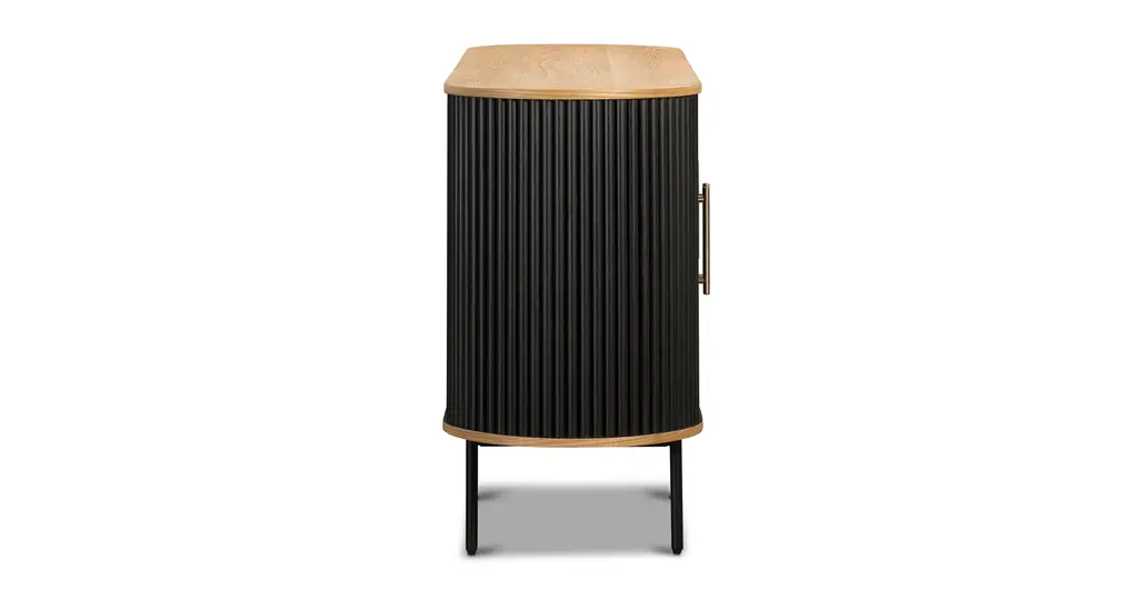 Ribbed and ravishing, our Noir Sideboard is the dark and dreamy addition your abode has been seeking. Add depth and dimension to your space thanks to its ribbed façade, powder coated legs, and natural solid and veneered American oak wood top. With ample storage and adjustable shelving for your entertaining or media needs, this sideboard also boasts cable cutouts at the back to ensure cables stay tidy.