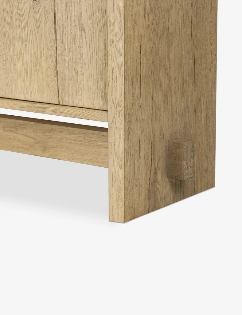 Four Hands brings their exceptional craftsmanship to a timeless collection rooted in Amber Lewis' perennial California style. Clean lines and a light oak finish bring focus to the rustic profile of the Norely sideboard. Two sets of doors open to spacious storage for dishes, linens, or household essentialsa versatile sideboard cabinet for dining room or living space.