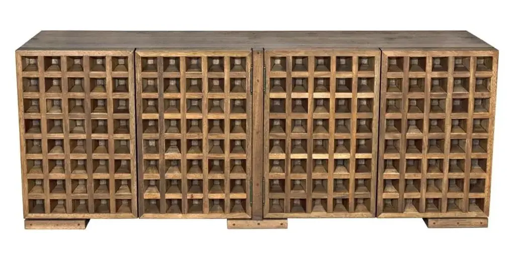 The Nuala Sideboard draws its design inspiration from classical architectural elements, featuring four deeply coffered doors that pay homage to centuries-old craftsmanship. This sideboard is a testament to the perfect fusion of timeless aesthetics and modern construction, making it a striking statement piece for any space. DIMENSIONS: Width: 77.5 inches Depth: 21.5 inches Height: 30 inches Designed for practicality, this sideboard comes with two adjustable and removable shelves, providing flexible storage options to suit your needs. The tool-free adjustment feature ensures easy customization of the interior space, allowing you to arrange it as desired.
