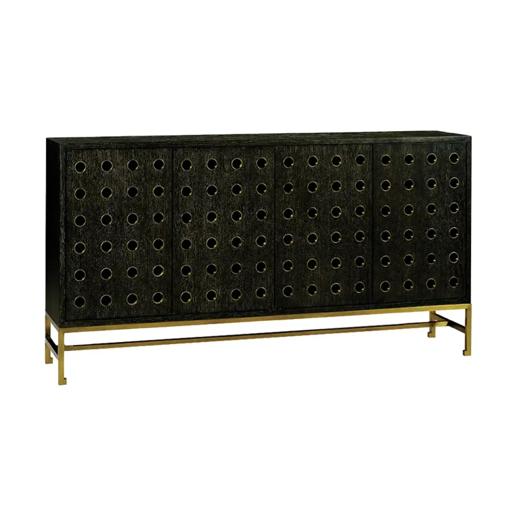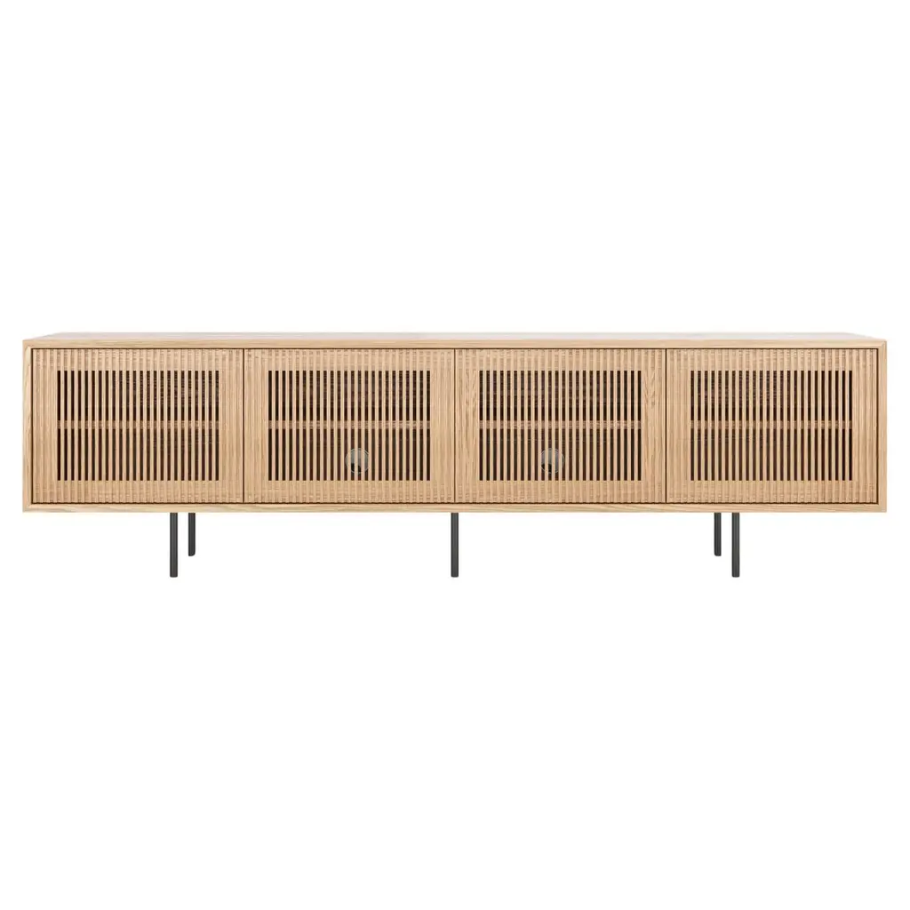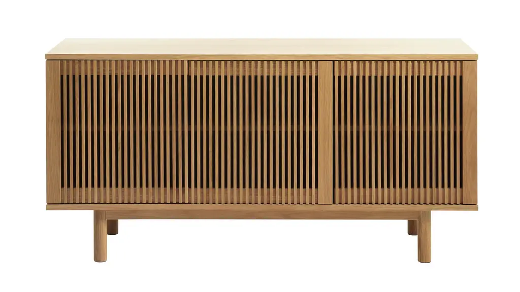 Oak Slatted Credenza / Sideboard With Record Player Hatch