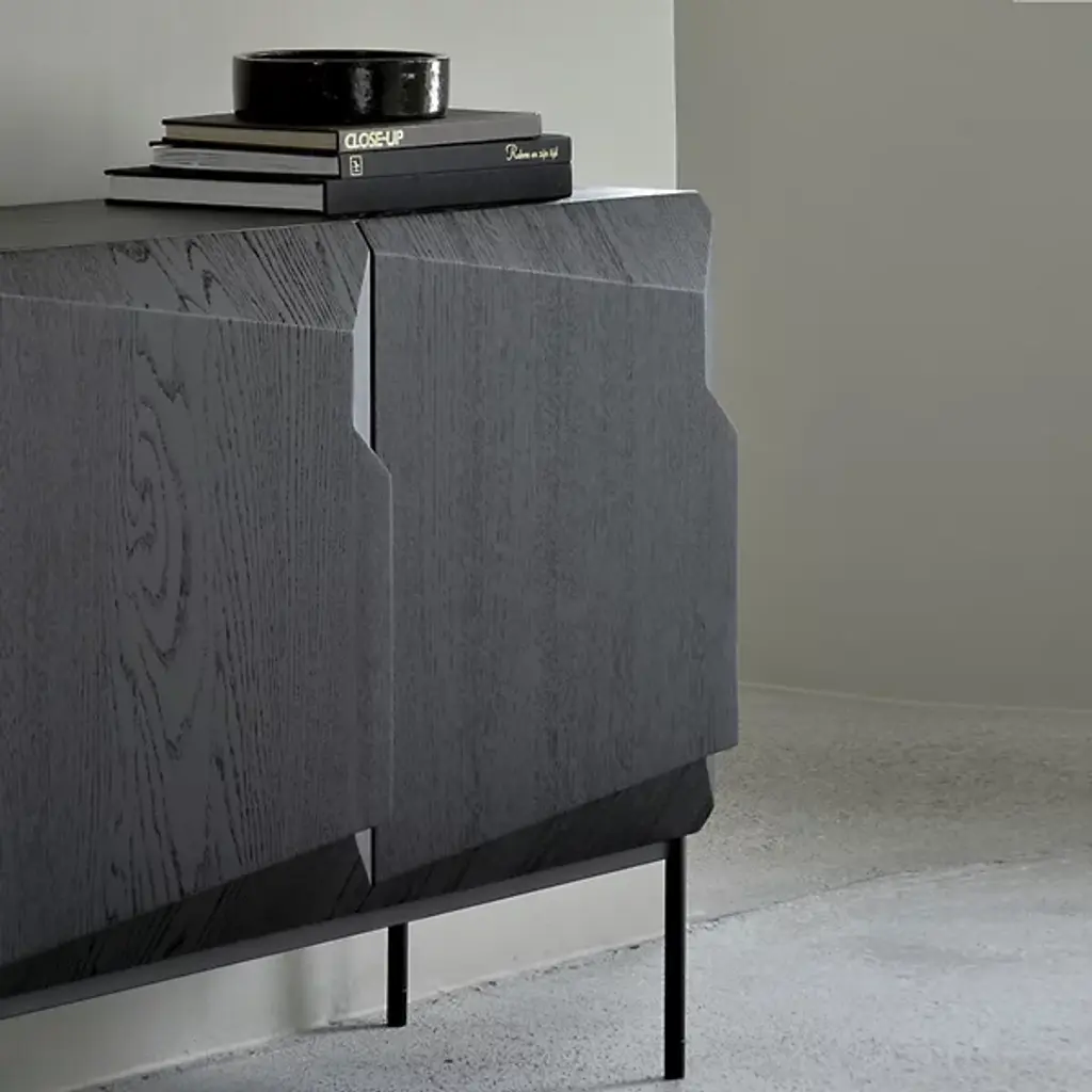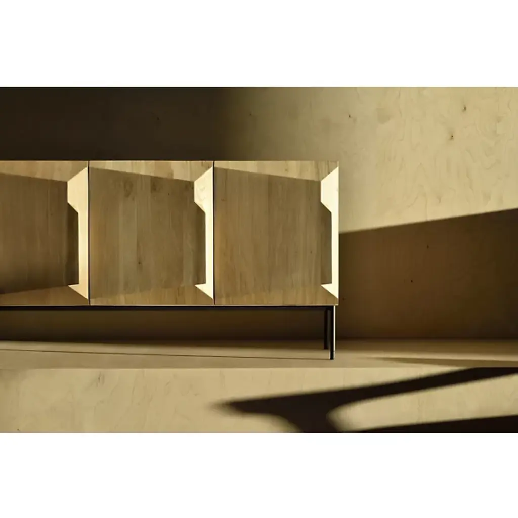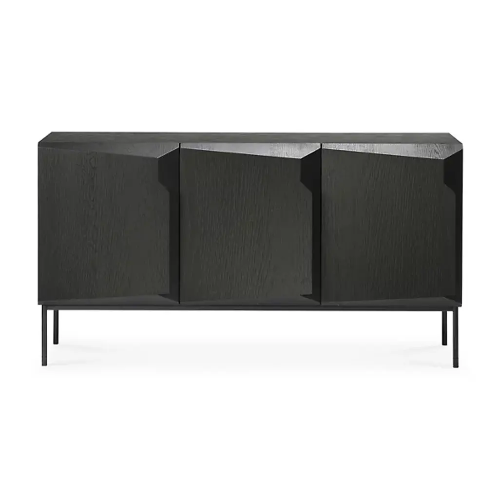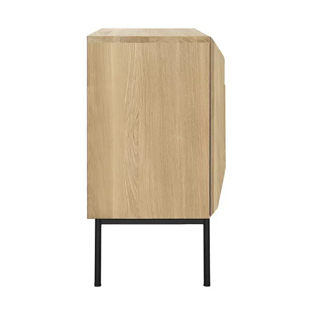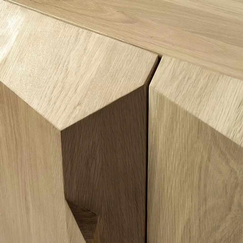 Stepped-up sophistication. As you move from one room to the other, the Oak Stairs Sideboard - 3 Doors from Ethnicraft draws your eyes with a dynamic set of angles. While setting itself apart from traditional, static furnishings, this piece provides a timeless feel in its solid wood construction. The wood's grain and golden hues radiate across the room. Sharp angles divide the face of the piece into intriguing shapes. Looking at the piece from one side of the room versus the other reveals another shape. A low-profile handle on the side makes the piece a pleasure to open up. Inside, you'll find enough space to help tidy up your rooms.
