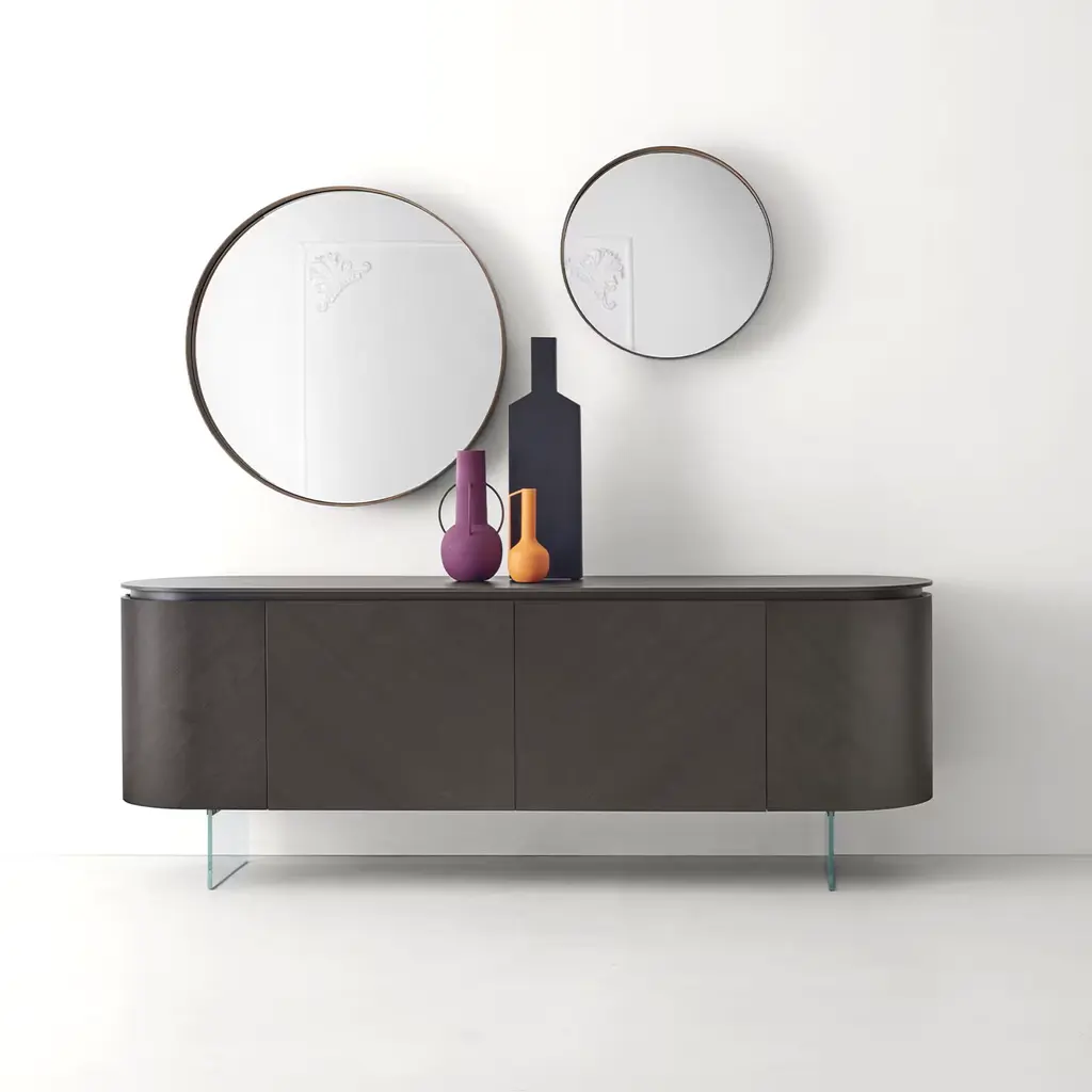 Opera Sideboard In Walnut Canaletto With Glass Base