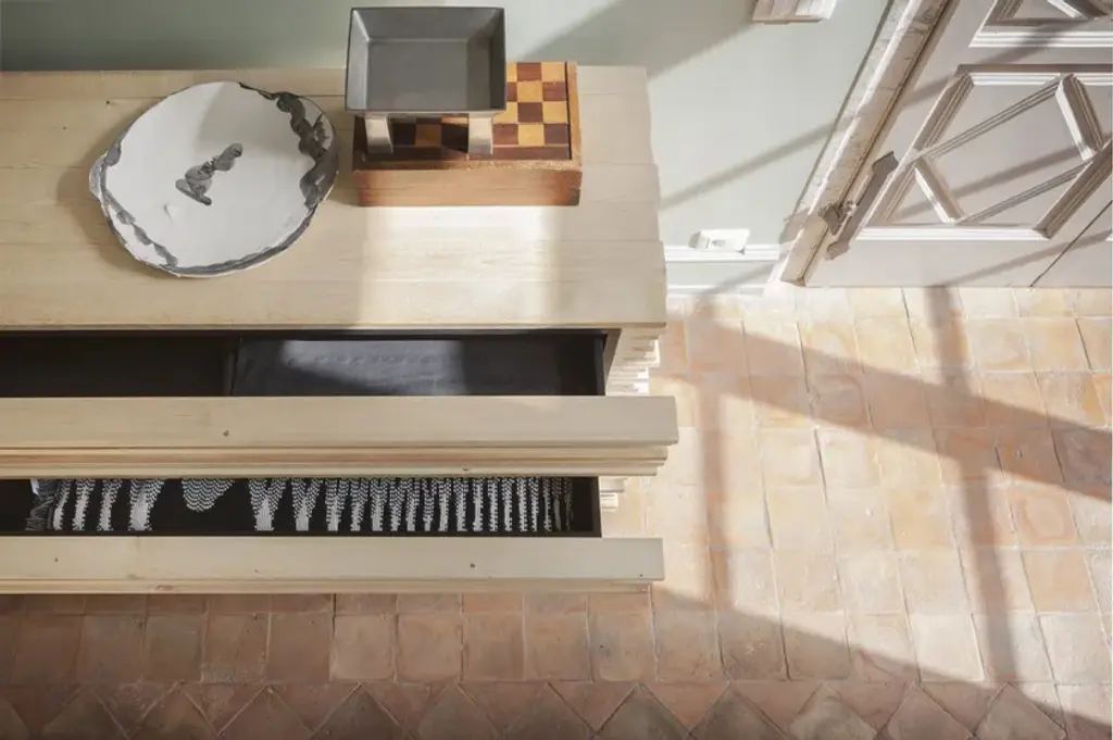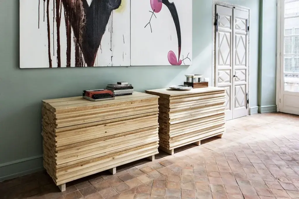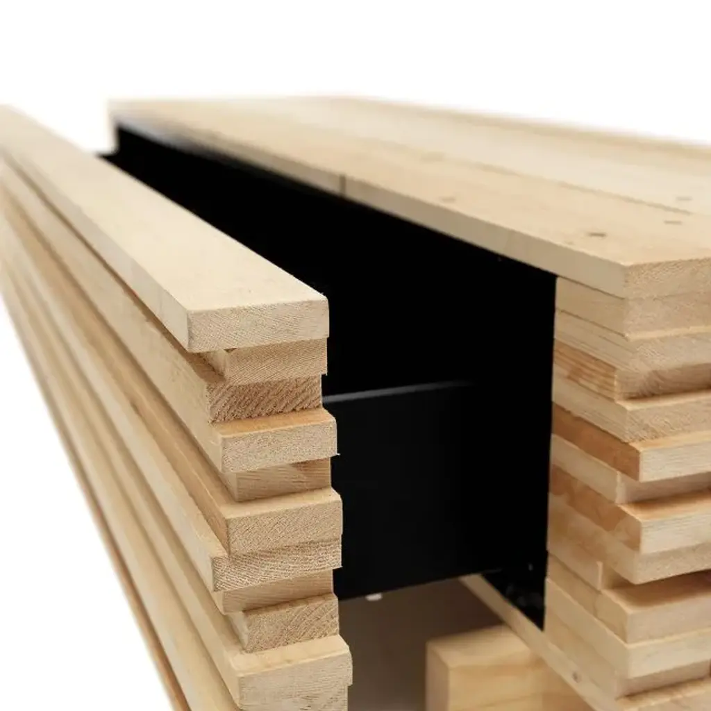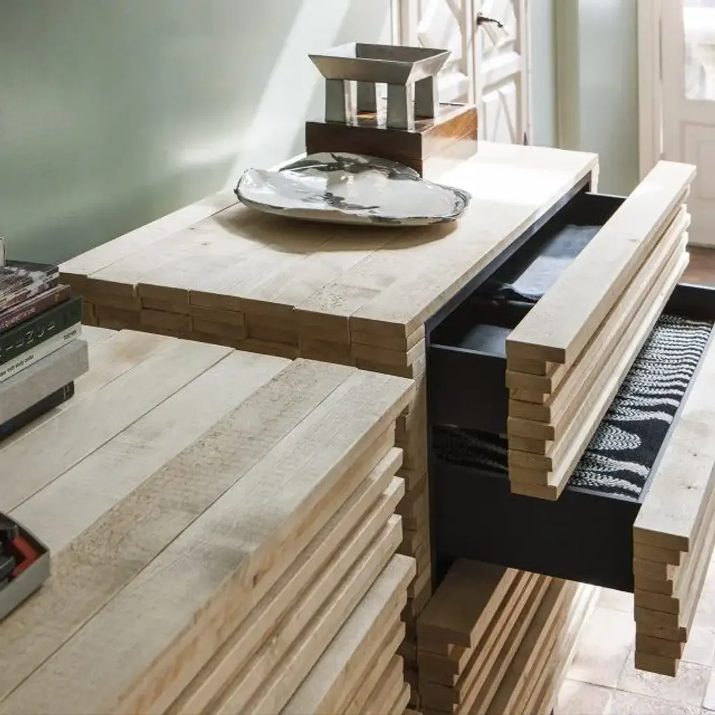 Ordinaryday is a solid wood pine chest of drawers with a natural finish, featuring 4 drawers. The structure, interior of the drawers, and the back panel are black. The purchase of the decorative back panel is optional.