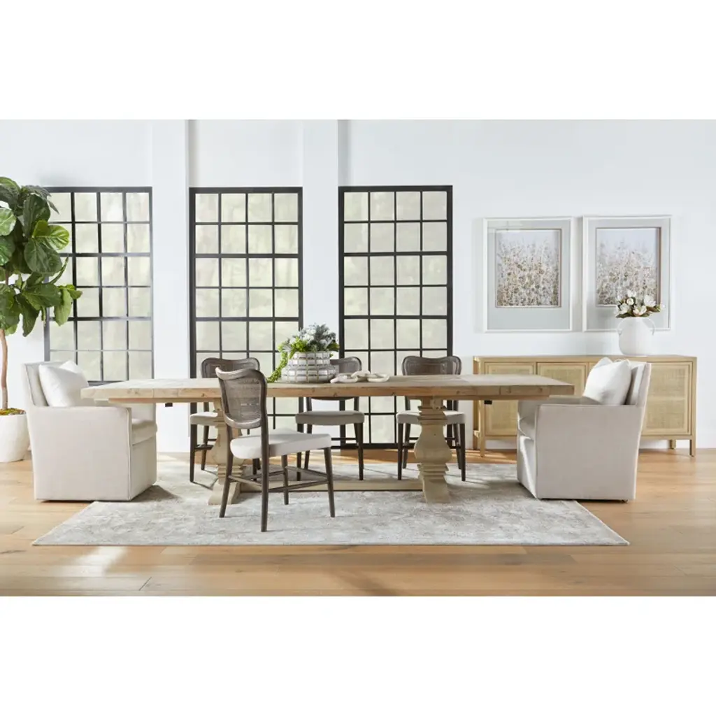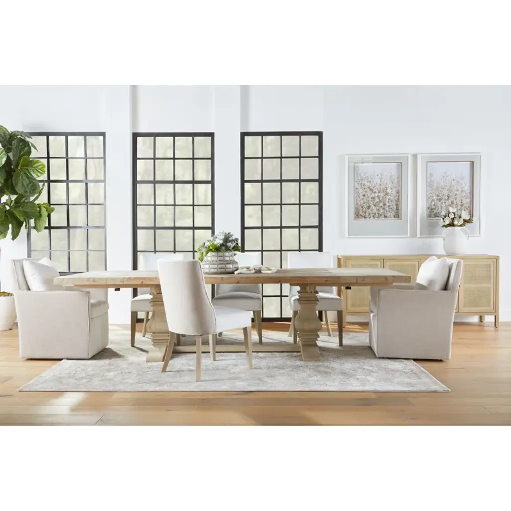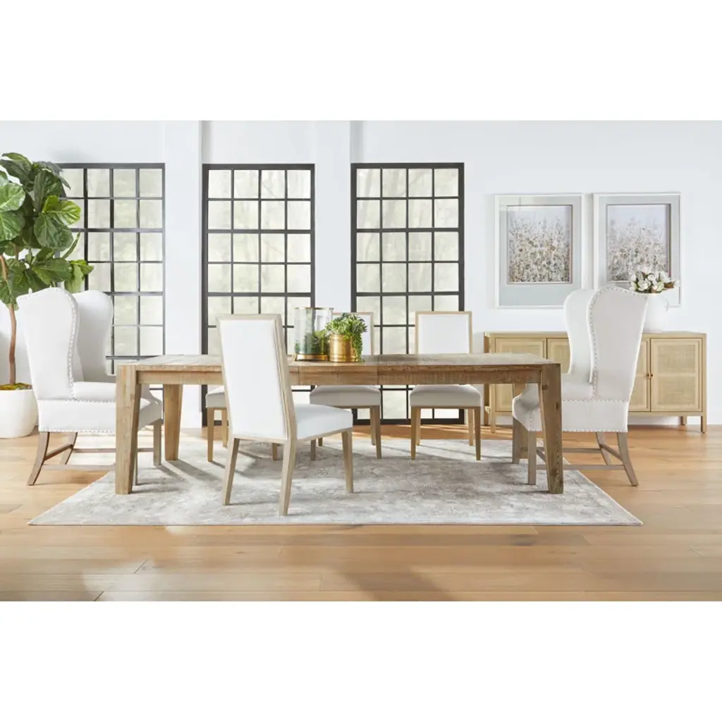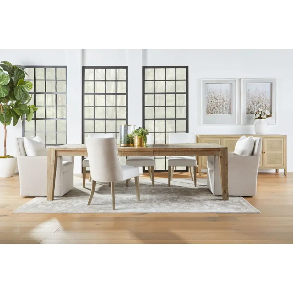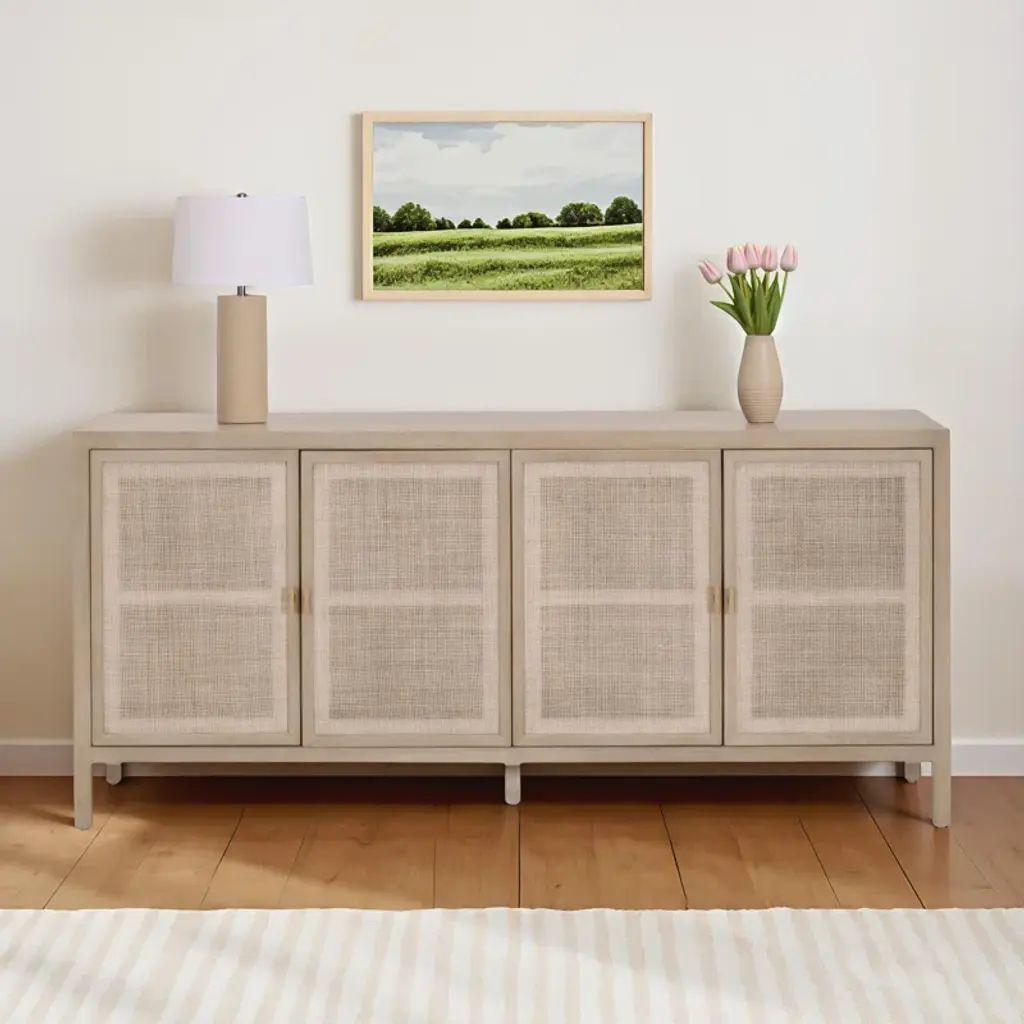 Elevate your dining space with this versatile sideboard, crafted from a mix of solid and engineered wood. Showcasing natural wood grain color variations, it brings a touch of rustic flair to your home. The finished back and adjustable shelves inside the cabinets make it easy to organize and display your favorite dinnerware. Plus, the cable management feature keeps your cords neat and tidy. Designed for everyday living, this sideboard comes with a tipover restraint device for added safety. Just remember, it's for residential use only.
