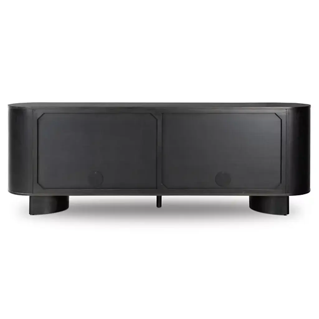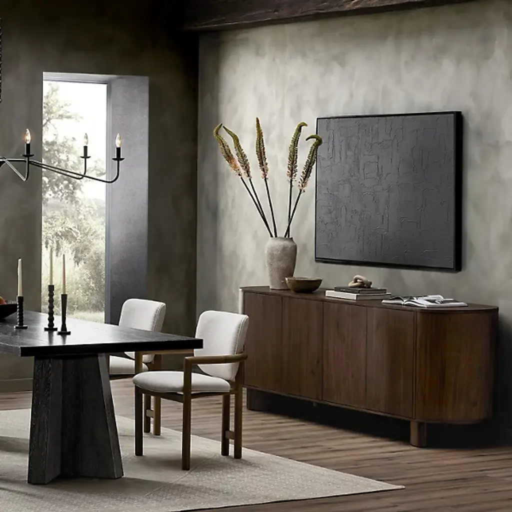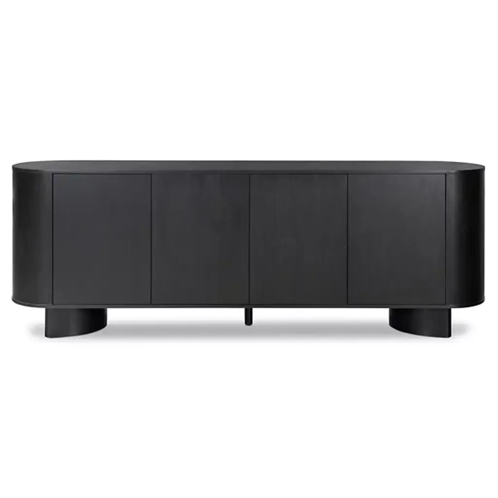 The Paden Sideboard from Four Hands is crafted from aged black acacia, featuring gracefully curved legs that bring a touch of elegance to its design. The spacious cabinets offer generous interior storage, making it ideal for organizing dining essentials and more. With its sleek, modern form and rich finish, this sideboard seamlessly blends style and functionality, making it a versatile addition to dining rooms or living spaces that require both beauty and practical storage solutions.