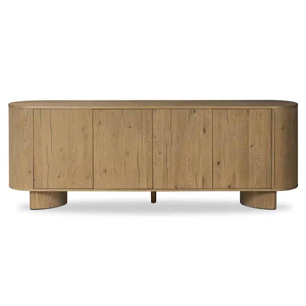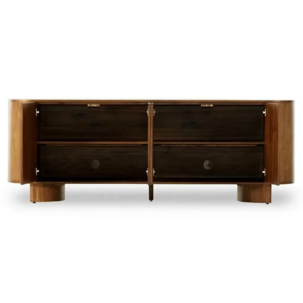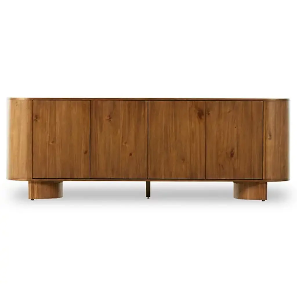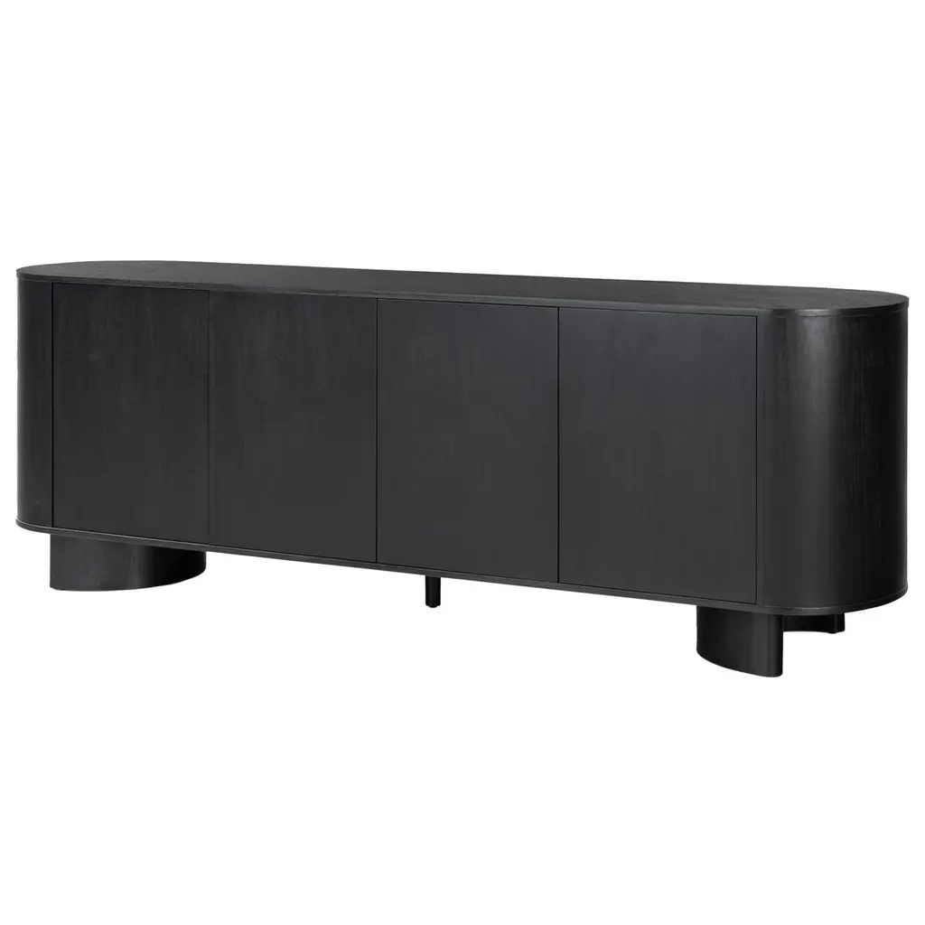 The Paden Sideboard from Four Hands is crafted from aged black acacia, featuring gracefully curved legs that bring a touch of elegance to its design. The spacious cabinets offer generous interior storage, making it ideal for organizing dining essentials and more. With its sleek, modern form and rich finish, this sideboard seamlessly blends style and functionality, making it a versatile addition to dining rooms or living spaces that require both beauty and practical storage solutions.