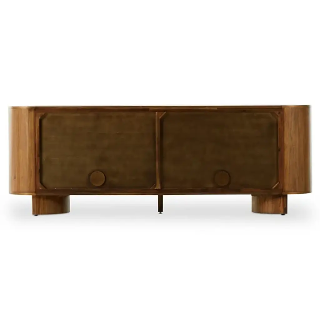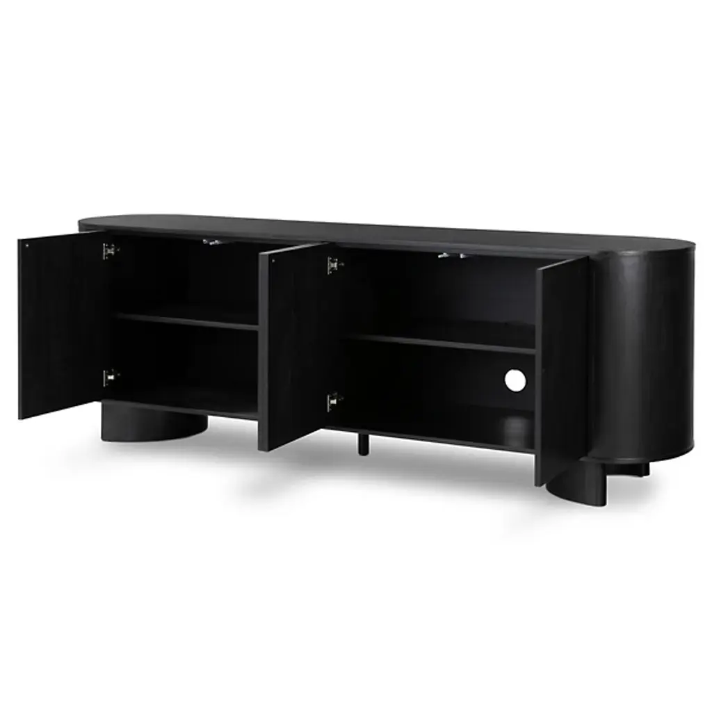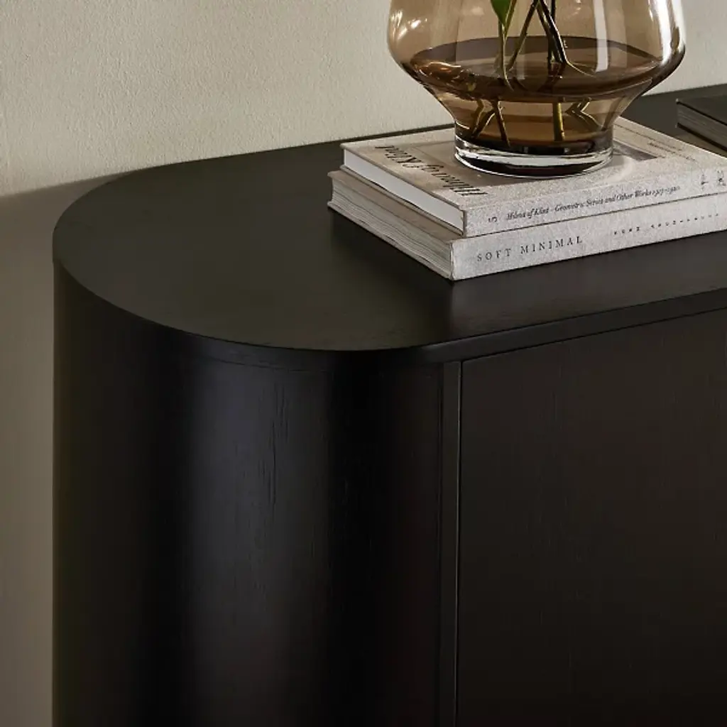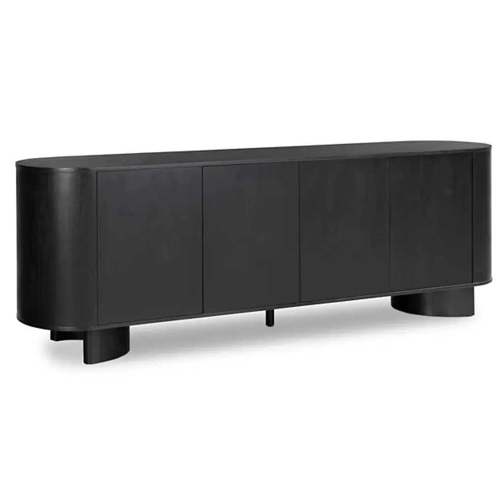 The Paden Sideboard from Four Hands is crafted from aged black acacia, featuring gracefully curved legs that bring a touch of elegance to its design. The spacious cabinets offer generous interior storage, making it ideal for organizing dining essentials and more. With its sleek, modern form and rich finish, this sideboard seamlessly blends style and functionality, making it a versatile addition to dining rooms or living spaces that require both beauty and practical storage solutions.