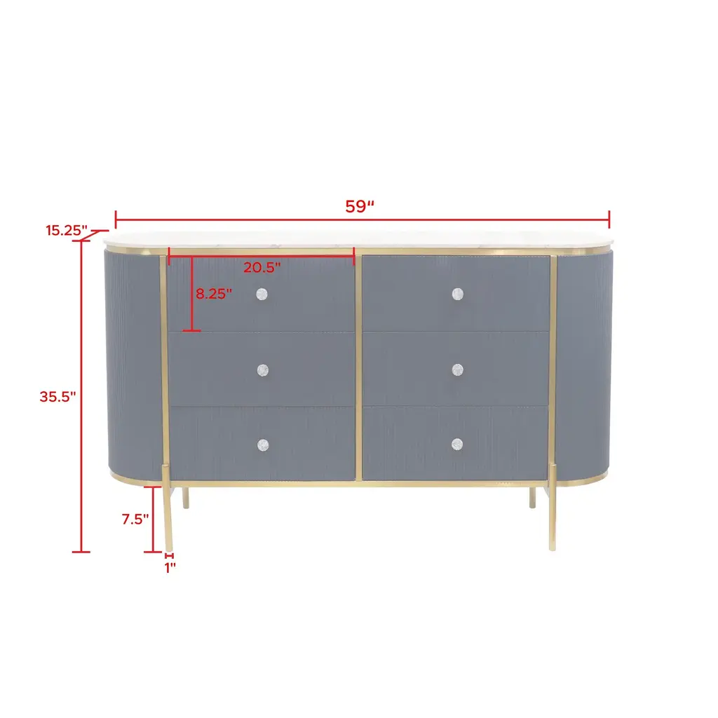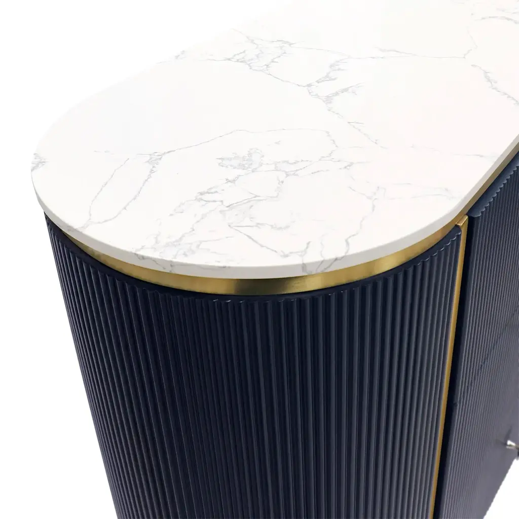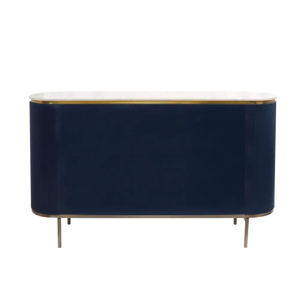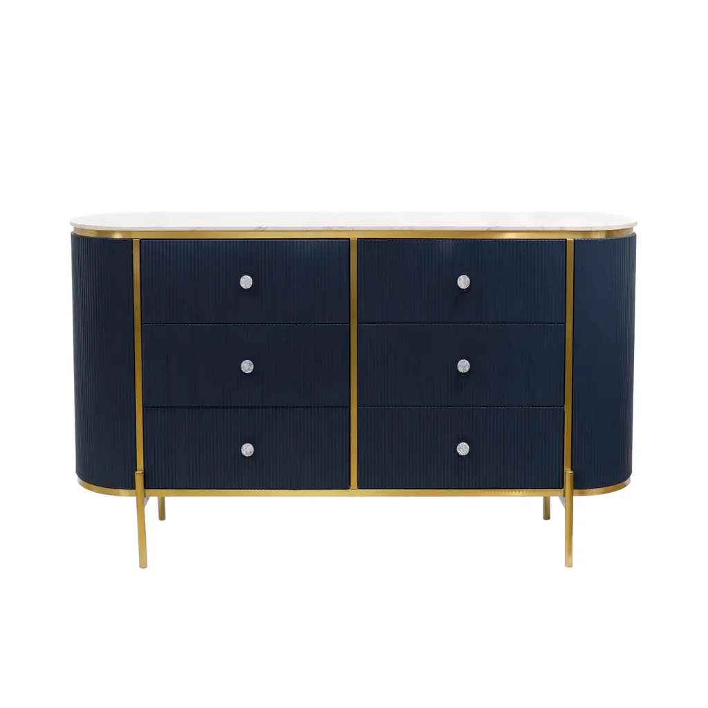Pasargad Home Theodore White Marble Top Sideboard With 6 Drawer, Navy