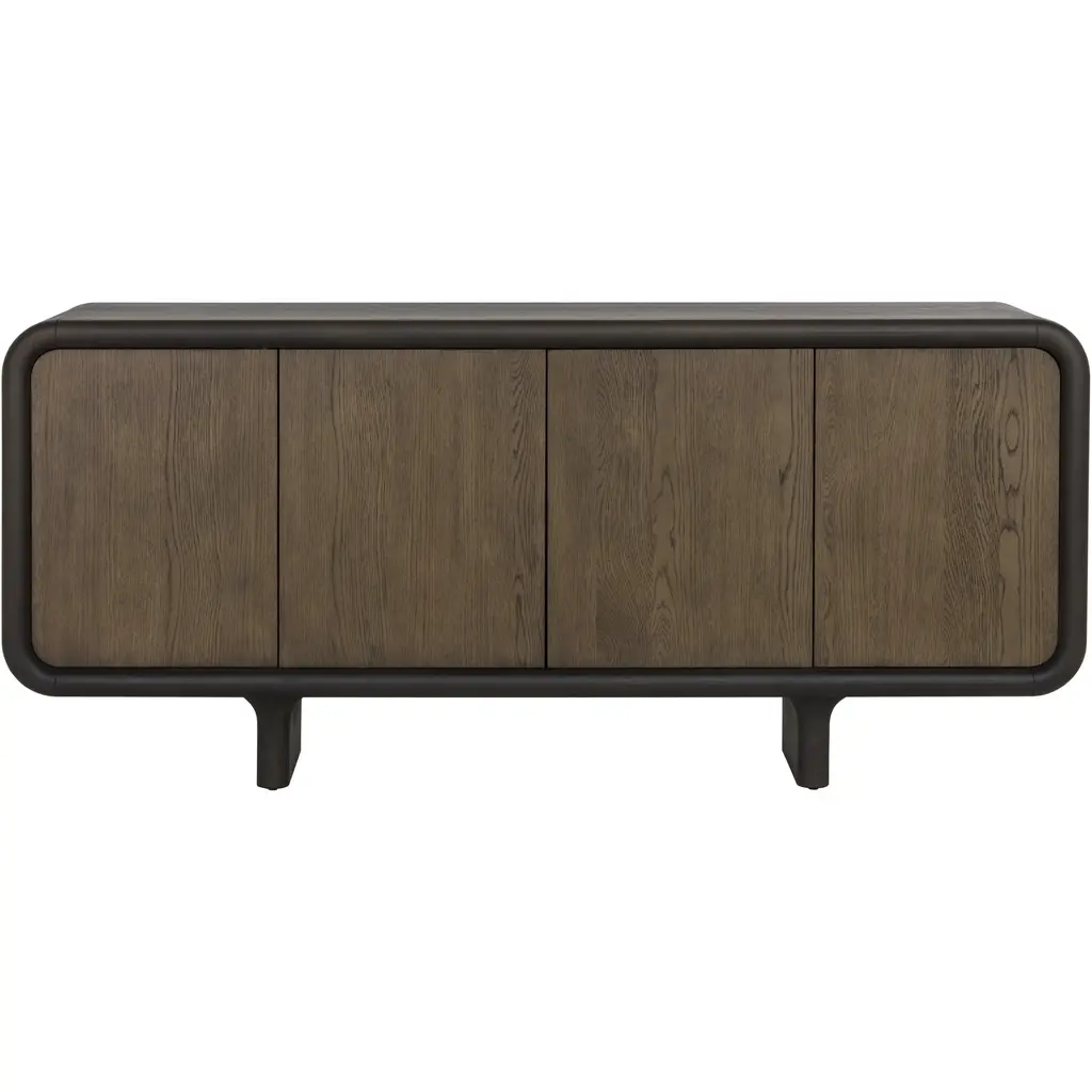The rounded silhouette of the Pascoe Sideboard celebrates skilled craftsmanship and nature's beauty. Elegantly crafted with oak wood and oak veneer in two contrasting finishes that highlight the rich detail of the wood's graining. With generous storage space, the Pascoe Sideboard is a refined solution for accommodating all the essentials.