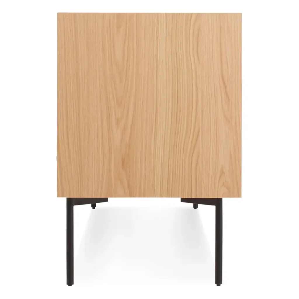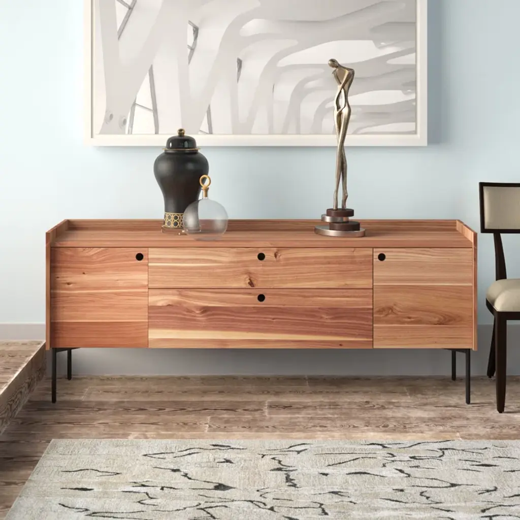 What is missing makes the mojo in this new wood case a good collection. A round cut-out in the drawer and door front acts as the pull, eliminating material, and creating function and visual appeal. Designed in a slew of shapes to see to storage needs in the bedroom, living room, and dining room.
