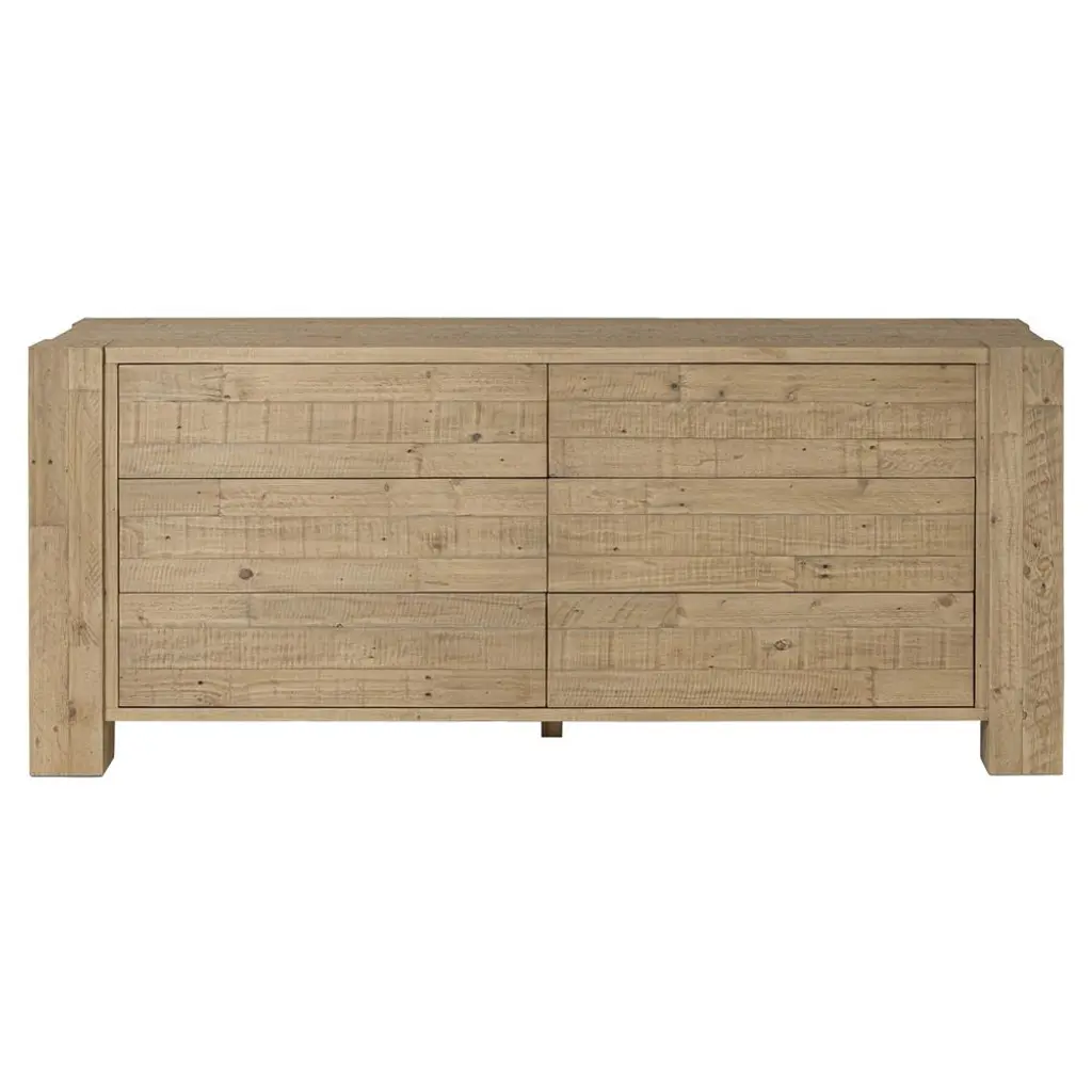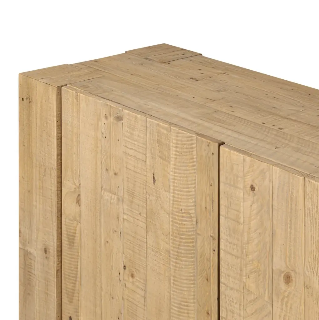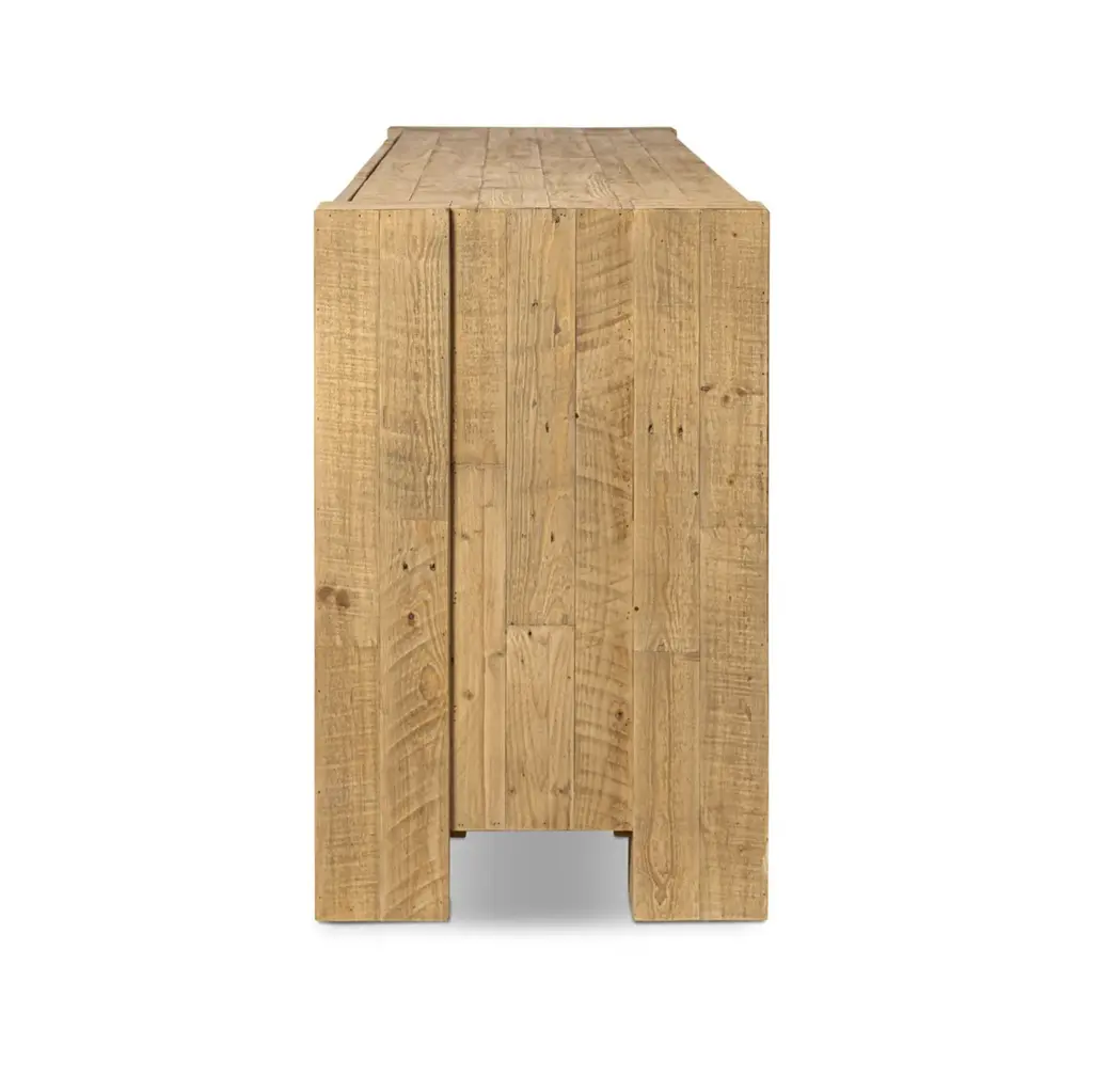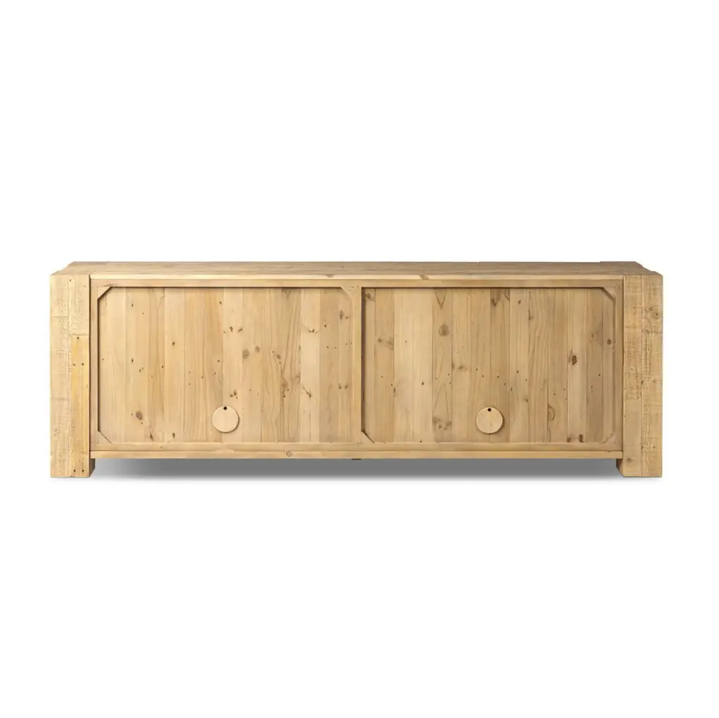 Constructed from pine with a blonde finish, the Perot sideboard offers ample storage with its spacious interior shelving. Its neutral design ensures versatility, making it suitable for various spaces.