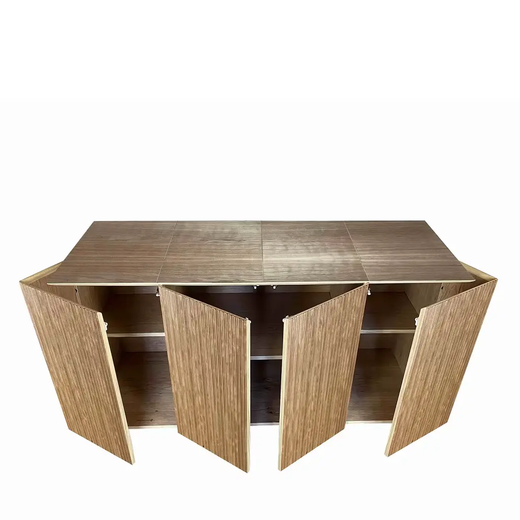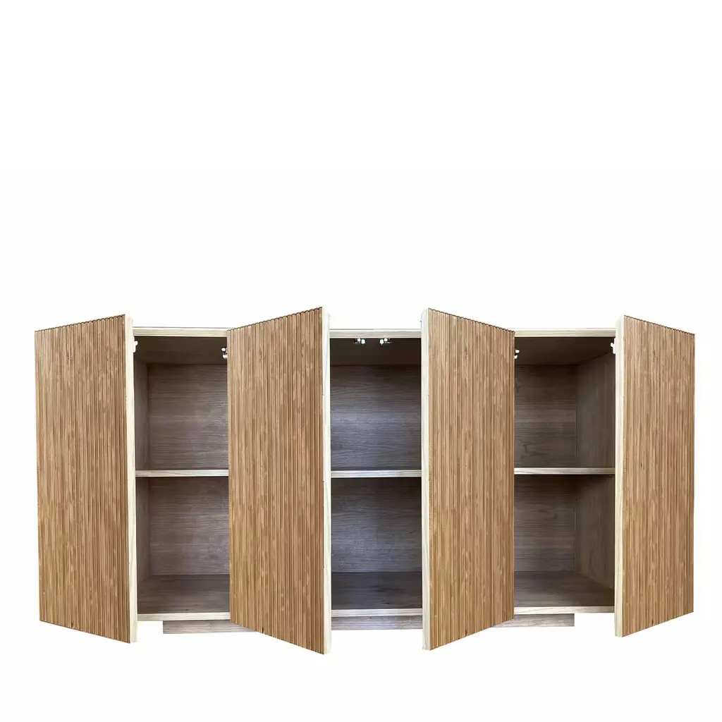 A captivating grooved design characterizes the four doors of this exclusive sideboard, skillfully handcrafted from cherry as part of a 10-piece limited series of singular signed pieces. Three inner shelves offer ample storage space for neatly organizing tableware. A label containing the number and date is also included with the delivery.