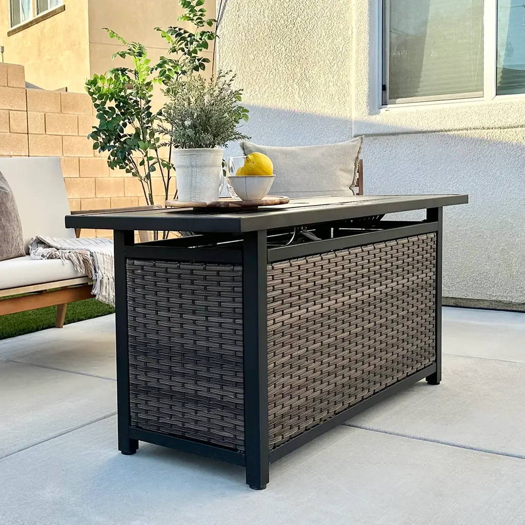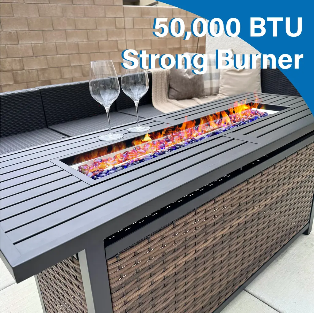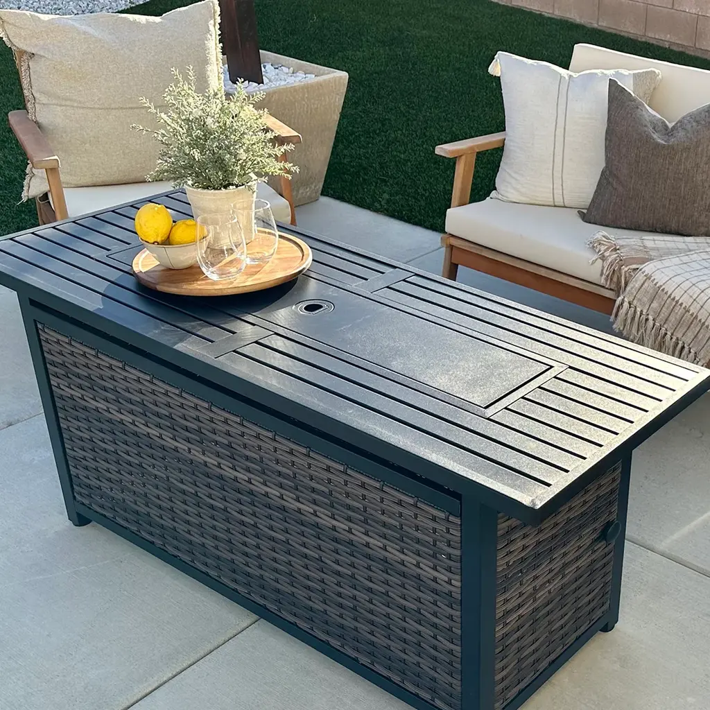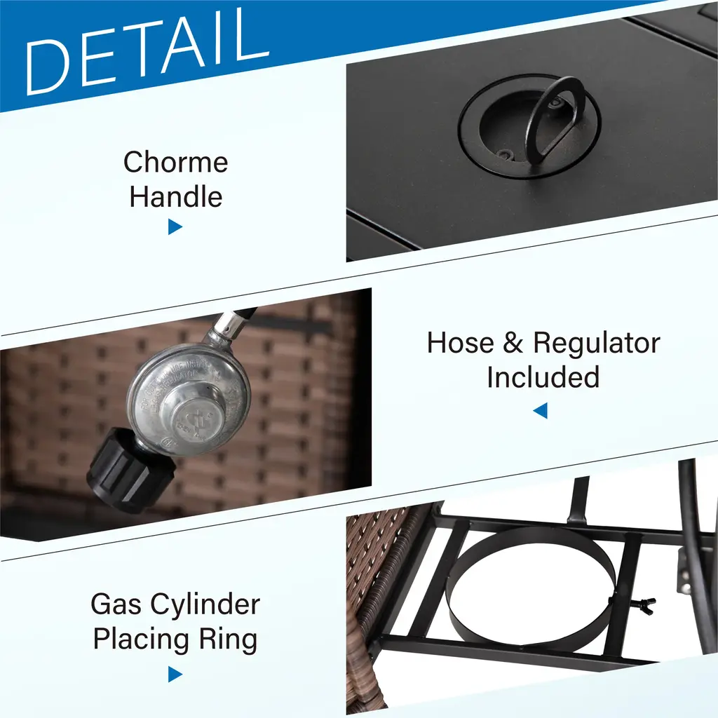 Phi Villa 50,000 Btu Patio Fire Pit Table With Rattan Side Boards
