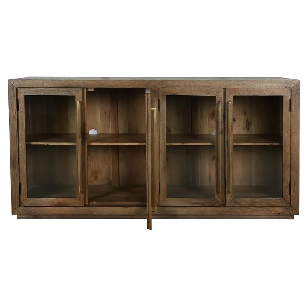 Pitt Rustic Lodge Brown Oak Wood Frame Clear Glass Sideboard