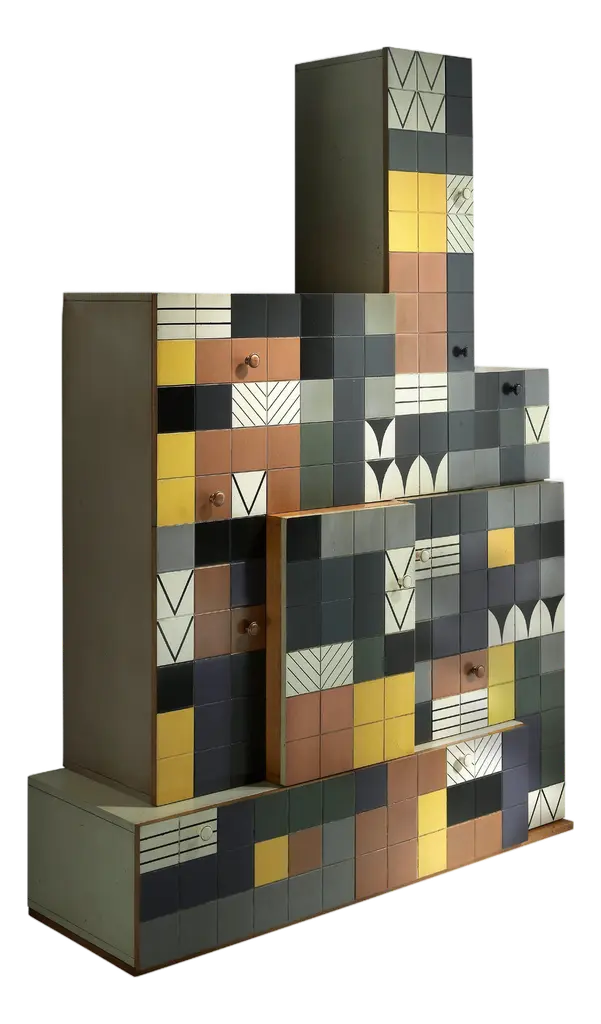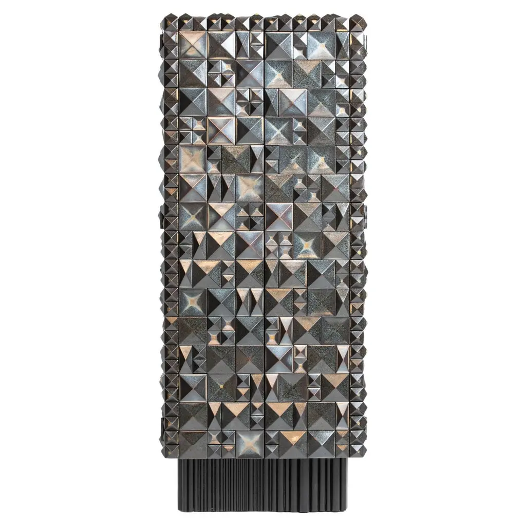 Iconic and unparalleled, the Pixel Sideboard presents a groundbreaking work of pioneering design. This furniture piece encapsulates the dedication and artistry of its creators, utilizing various traditional production techniques to craft an avant-garde sideboard that seamlessly blends with contemporary aesthetics. Its playful character is expressed through both its shape and colour palette, pushing the boundaries of conventional design with meticulous craftsmanship. Fashioned with 1088 triangles, the upper part of the Pixel Sideboard plays with perception, marrying exceptional materials with a metal-coloured composition. This unique and striking design makes the sideboard a perfect addition to modern living spaces, showcasing a harmonious fusion of innovation and sophistication.