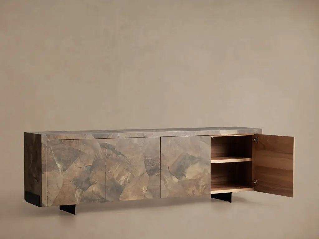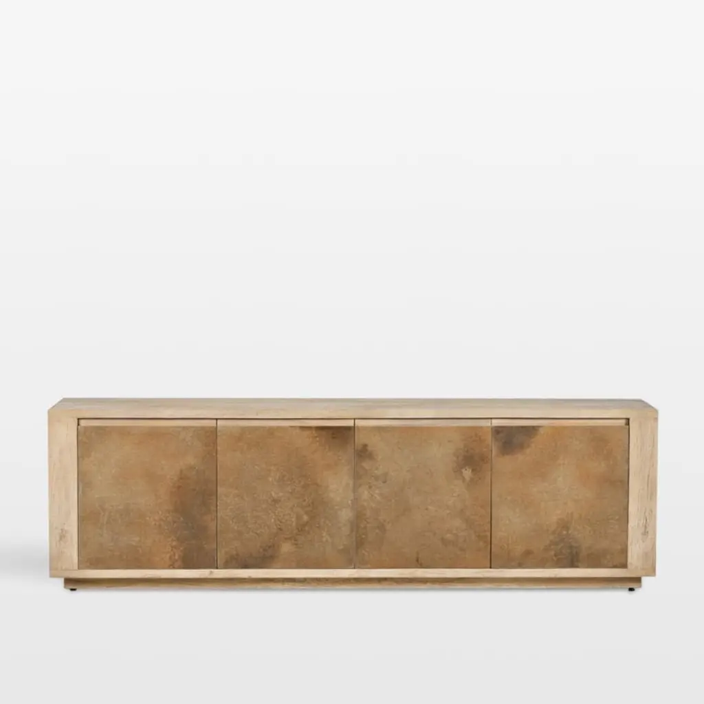 Following heavy storms, our artisan partners in Mexico search the forest for fallen trees of Mexican ash, salvaging as many as they can. Each log is oyster-cut, arranged, and stained by hand, united with fragments of sustainably grown European ash burl to create incredible, mosaic-like surfaces. Bases crafted from naturally oxidized metal add the perfect contrast, together forming the rustic beauty of our remarkable Polanco Collection.