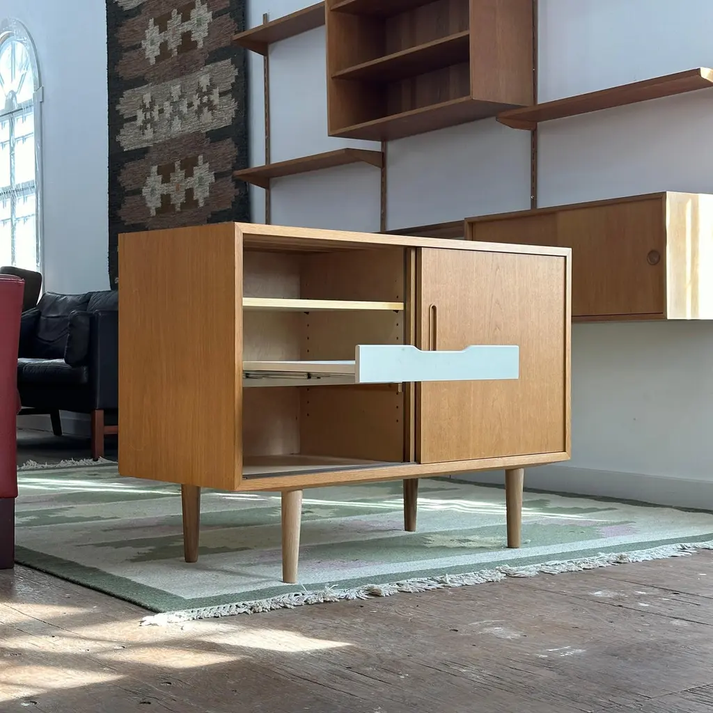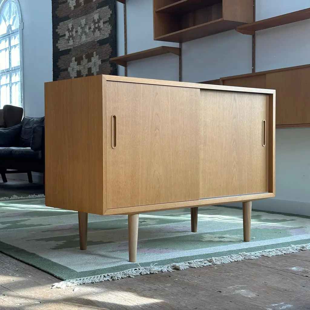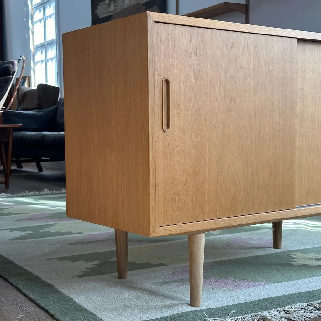 Condition: UnrestoredDimensions: 42.5” L x 16.75” D x 29.5” HDescription: A vintage oak sideboard by Poul Hundevad. Freshly imported from Denmark.Price includes restoration. Turn-around time 3-4 weeks. Piece will be a more golden oak colour after restoration. Also available as-is for a lower price. Please contact us for more information.INV 2-38Contact us for more details or pictures.