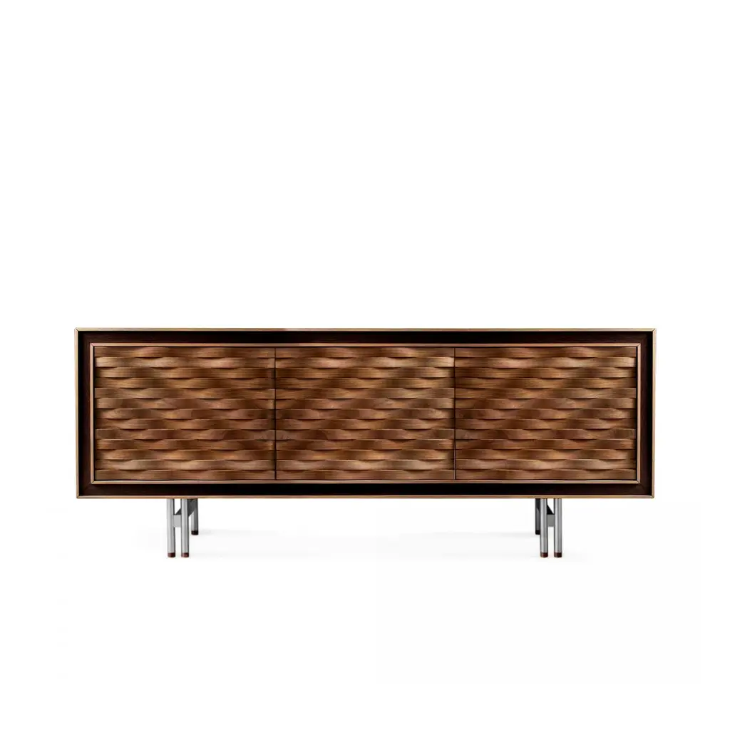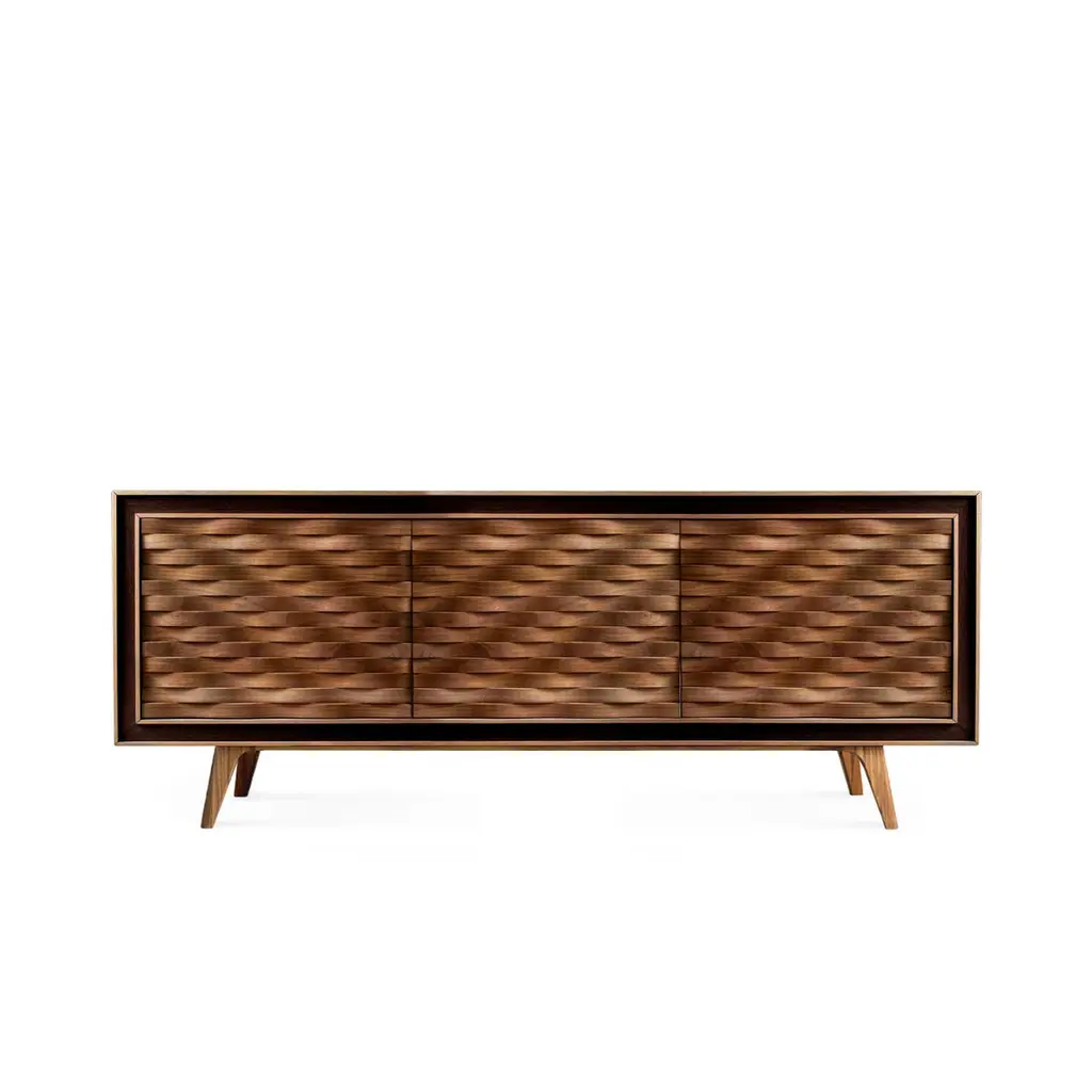 Quadra Nastro Solid Wood Sideboard, Walnut In Natural Finish, Contemporary