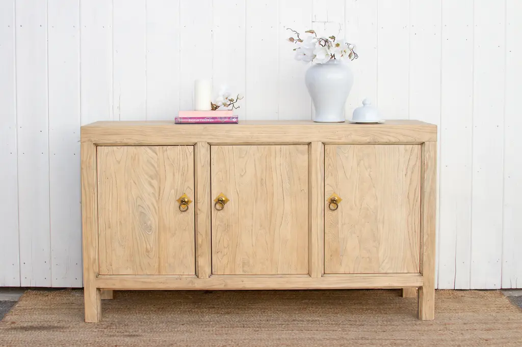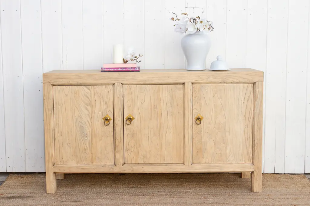 Reclaimed Bleached Wood Asian Sideboard