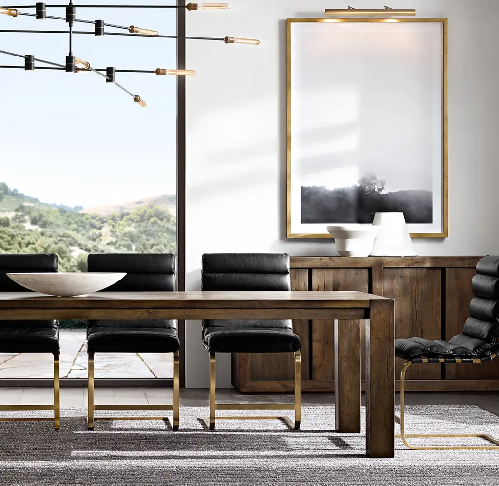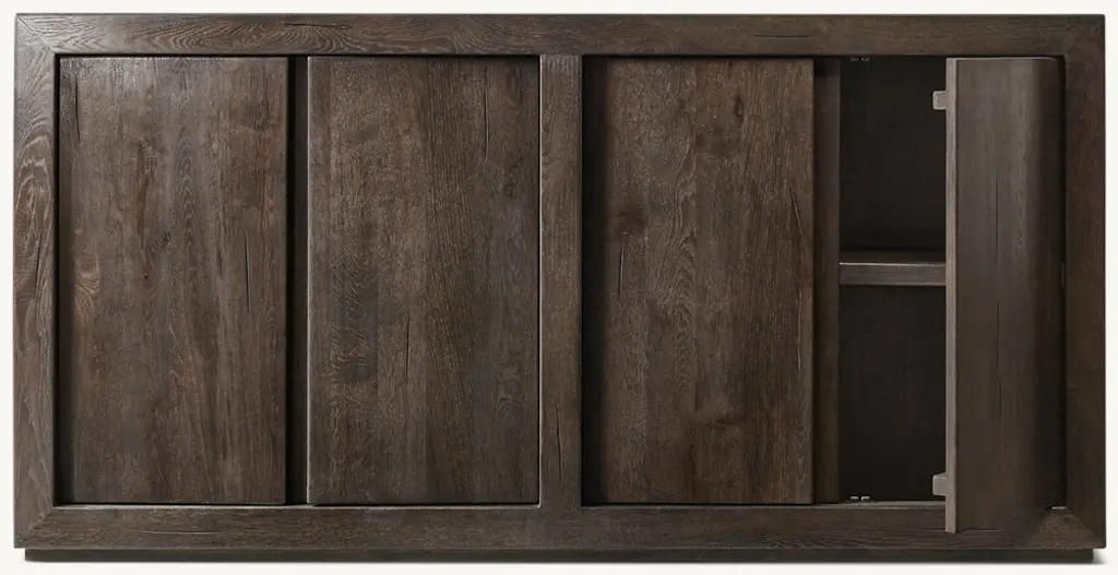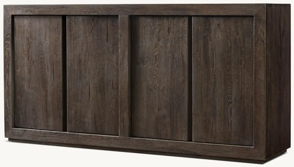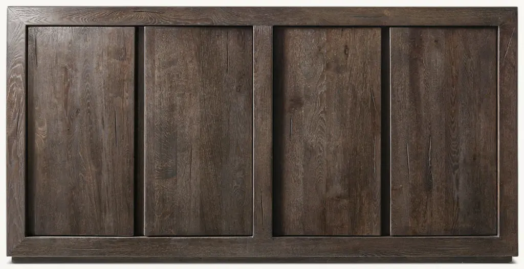 Reclaimed oak timbers from decades-old buildings, with distressed white oak planks for consistency and stability, lend richness to this simple, linear collection from artisan Theo Eichholtz. Each piece is handcrafted of wood that retains its natural character, bearing the occasional knot, nick or crack where no two sideboards are exactly the same. SHOP THE ENTIRE COLLECTION