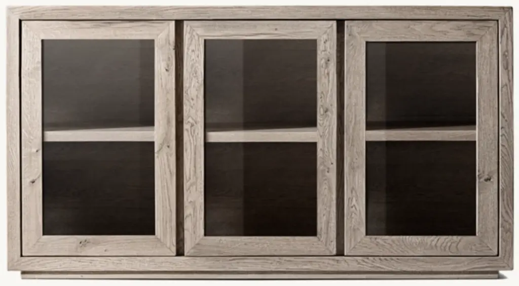 Reclaimed Oak Thin Frame Glass Triple-Door Sideboard