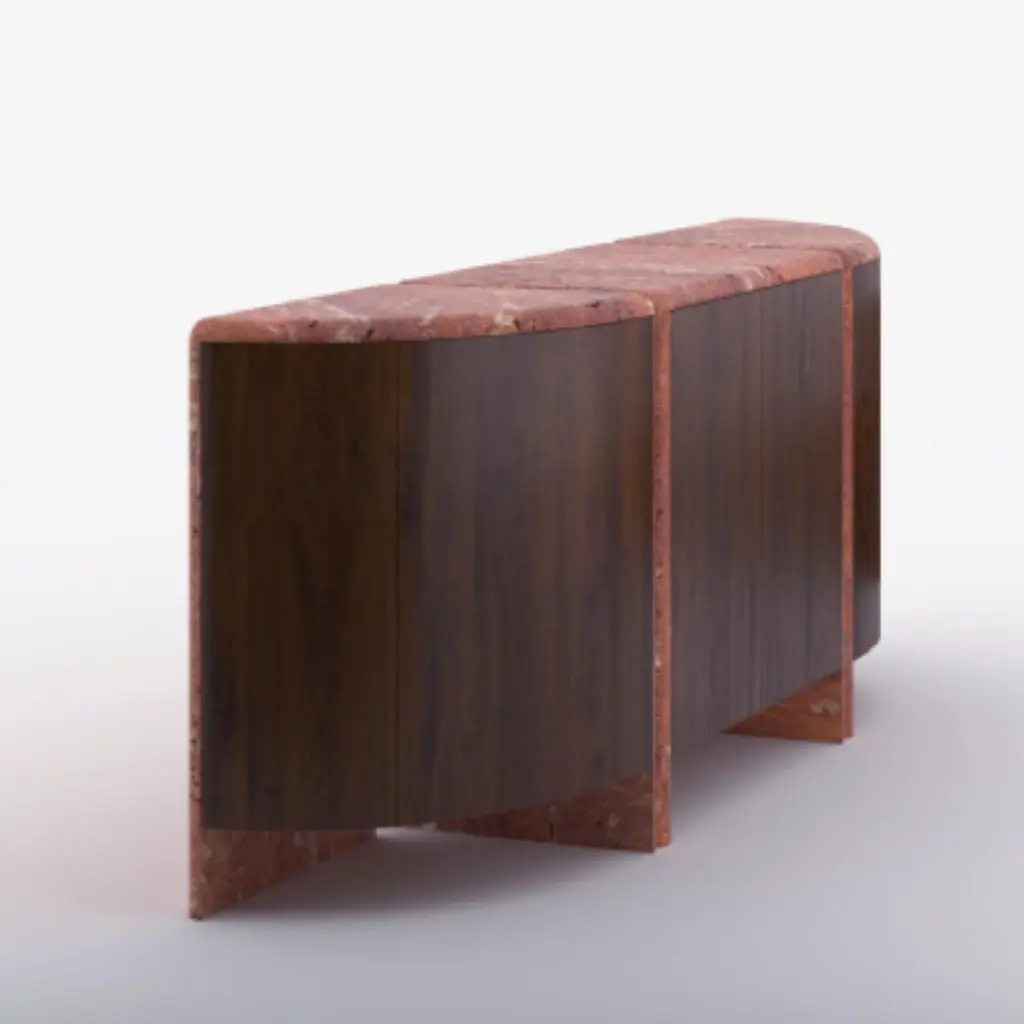 Red Travertine And Walnut Lily Credenza By Fred And Juul
