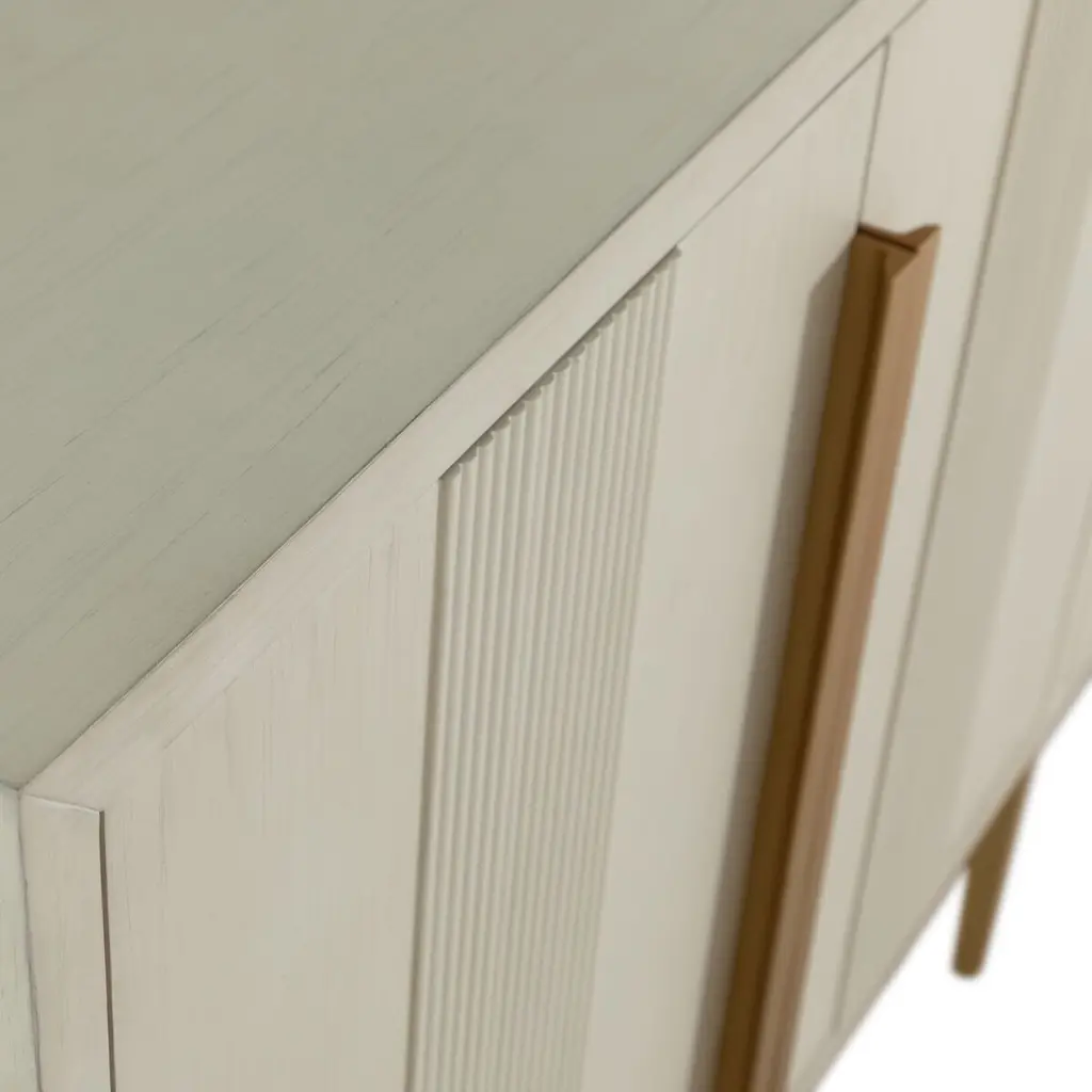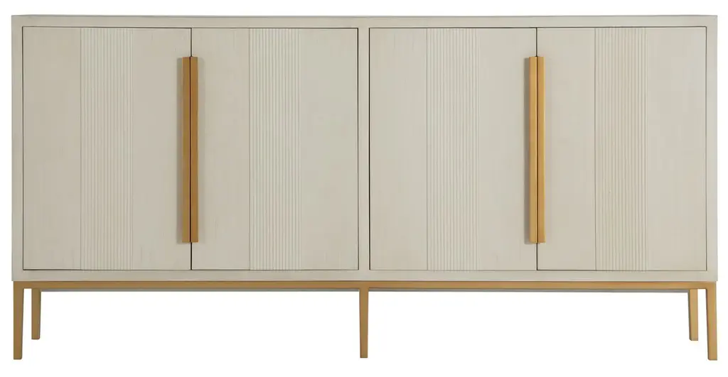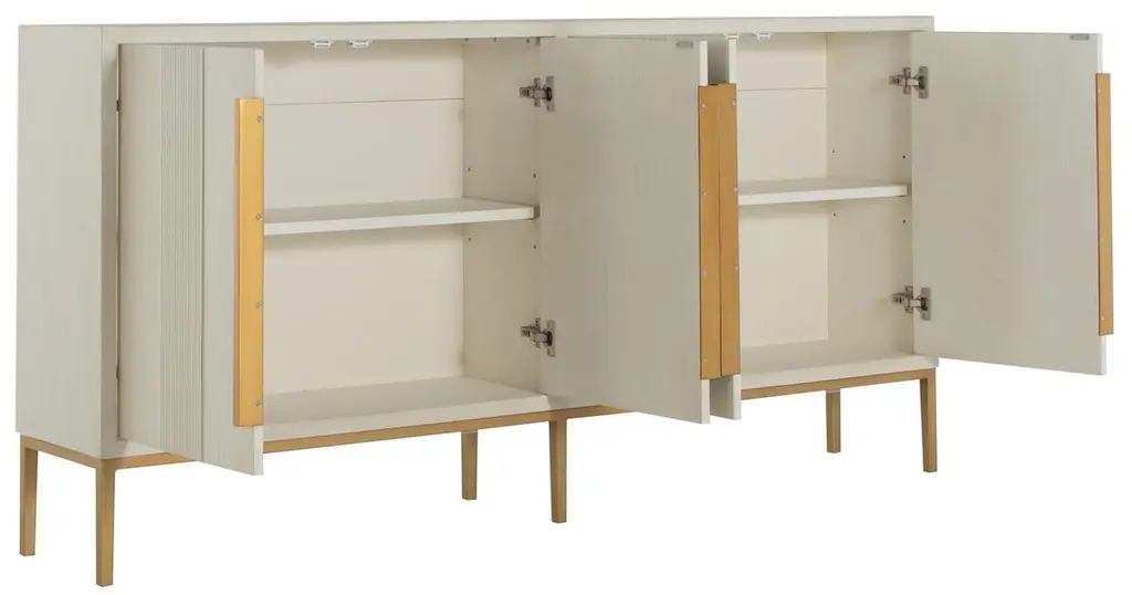 The Robinson Sideboard offers a transitional design, inspired by the bestselling Carol sideboard, but with a more contemporary twist. This piece features sleek detailing on the doors and modern metal hardware, adding a sophisticated and luxurious touch. Elevated by a minimalistic metal base, the Robinson Sideboard brings both style and functionality, making it a versatile addition to any dining or living space.