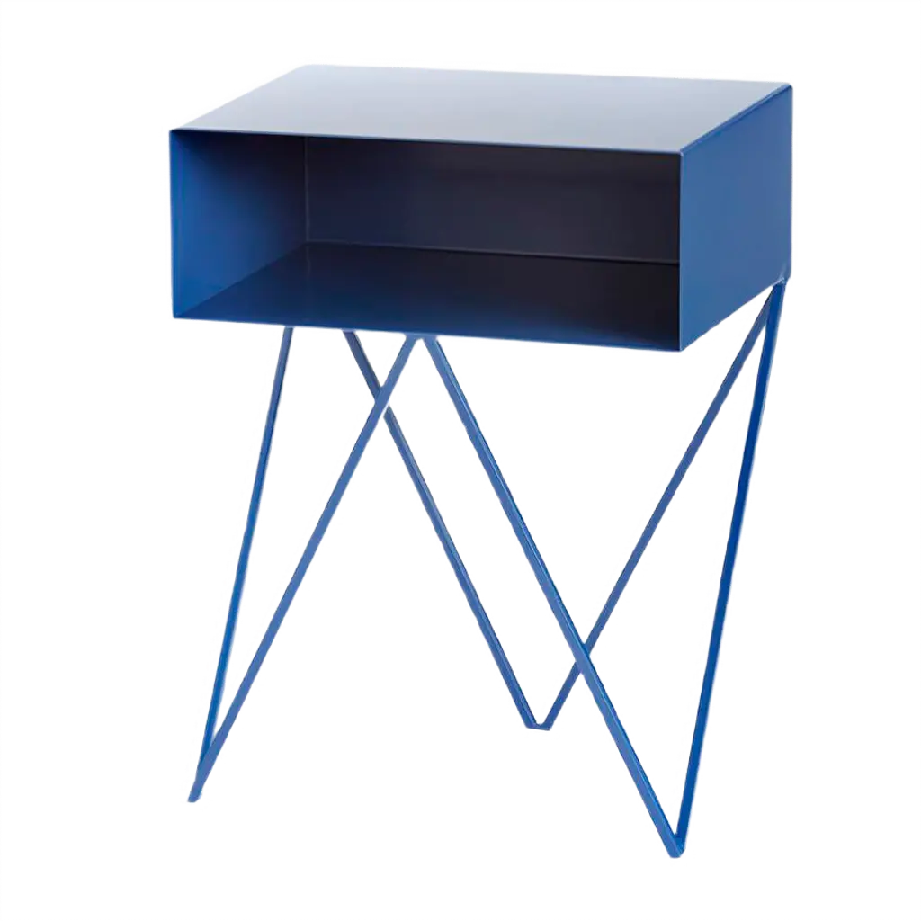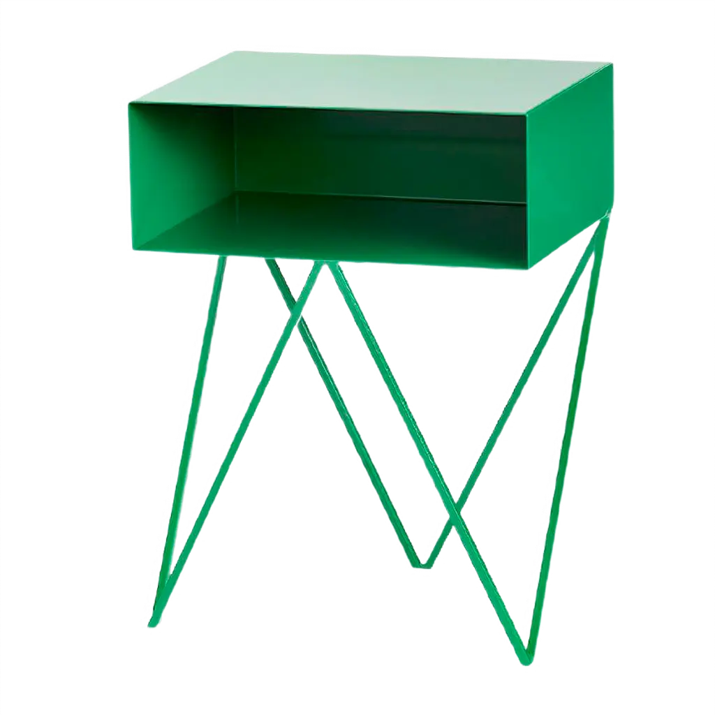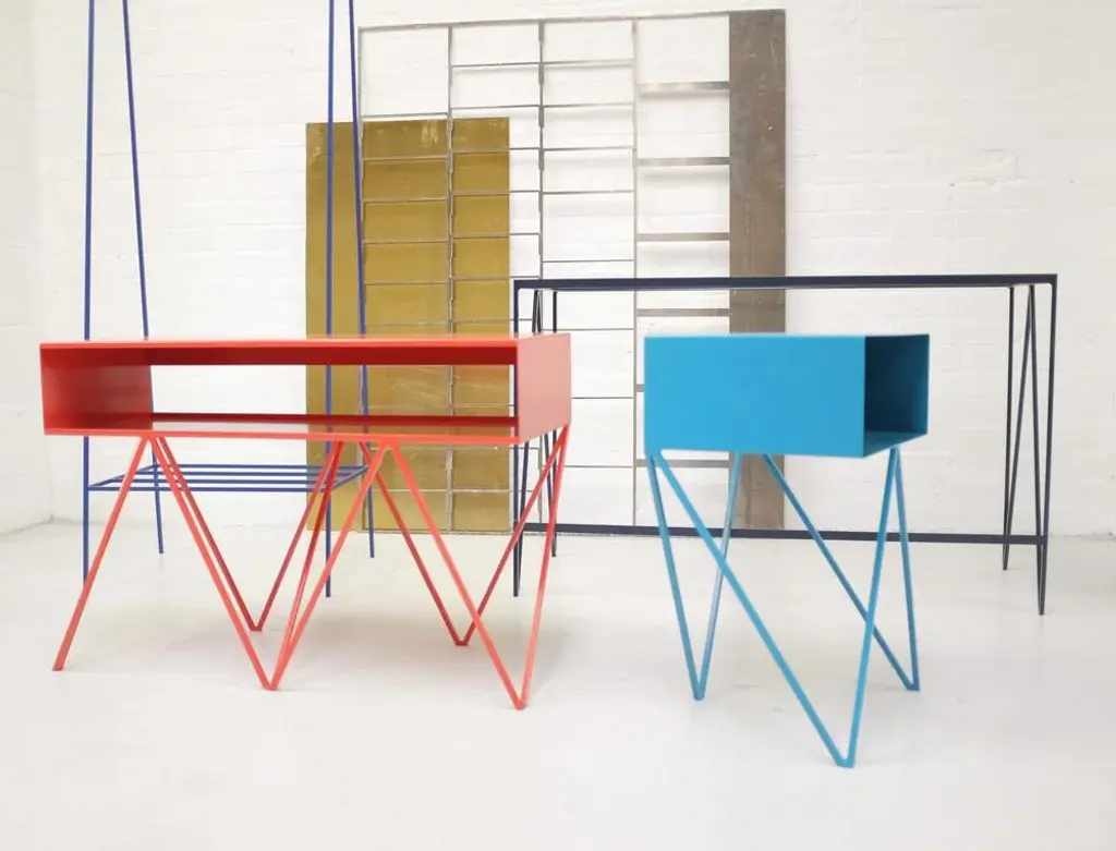 The sculptural low steel sideboard Robot Too is great as a media/AV stand. The slim pigeonhole shelf on top has a clever half-open back to hide wiring and leads. This one is powder coated in orange. All &New products are manufactured in Britain in small batches. They have plenty of character as every weld is different. The result is a collection of furniture that celebrates those little imperfections that make objects beautiful. Measurements: 90cm wide, 37cm deep, 61cm high. 17cm shelf height. Labeled by Maker,Labeled by Maker