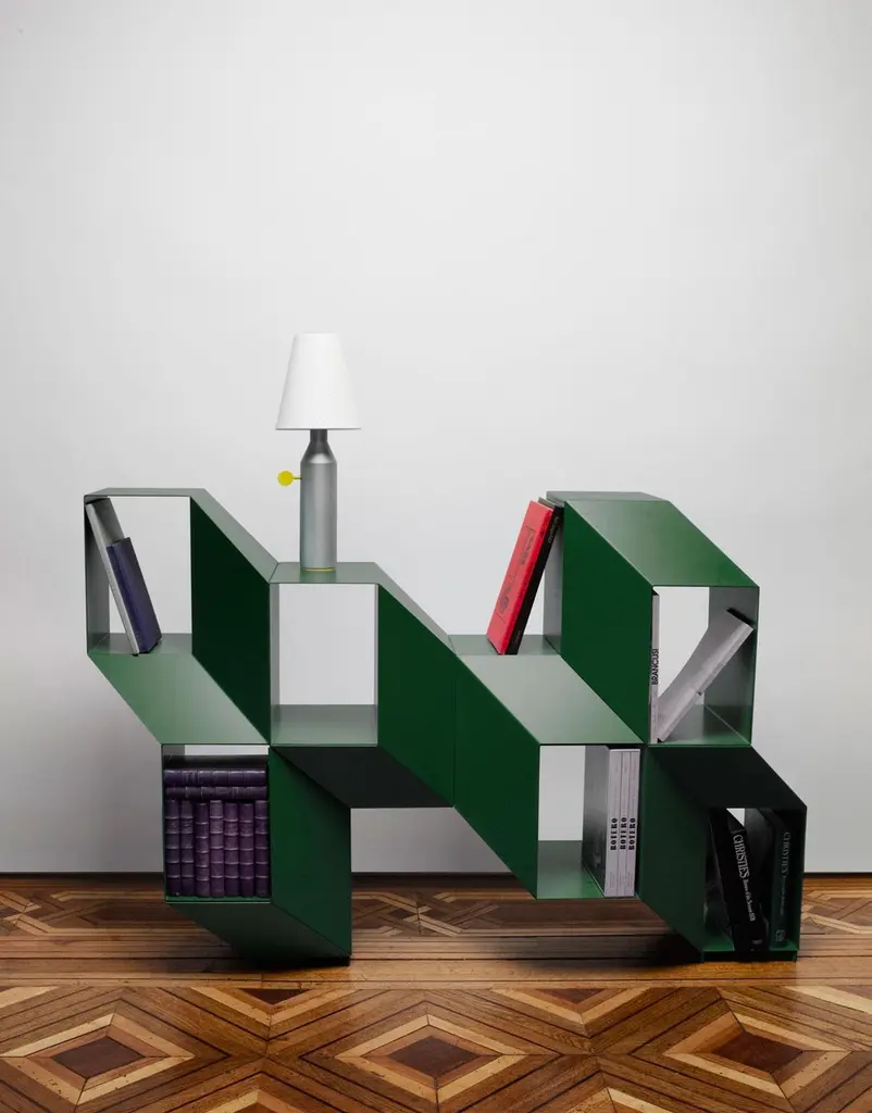 Rocky is a sculptural piece. It can be used as a console or a credenza but will also accommodate books and objects to become the most graphic display or bookshelf.Designer Charles Kalpakian plays with our perception of space and volume with an object that reveals itself and changes according to the observer’s point of view.