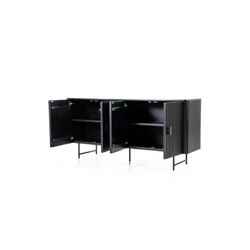 A modern minimalist dresser that doesn't compromise on style. Remi by Eleonora features four doors enclosing shelved storage. Crafted from slatted mango wood, this dresser evokes clean aesthetics that easily make a fine feature in any room.