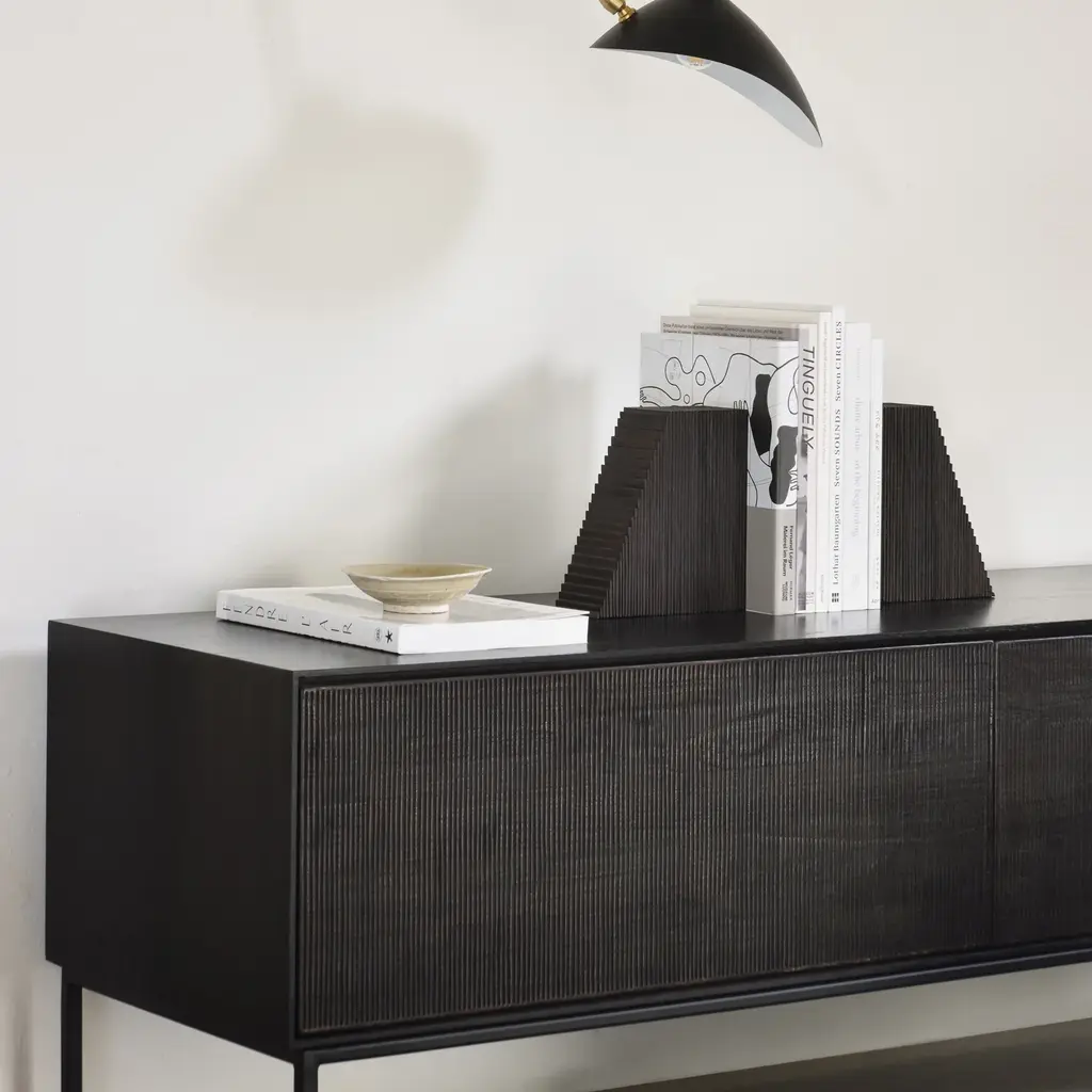 The Roller Max sideboard offers functional storage in an eye-catching design. Featuring sliding doors, adjustable shelving and seamlessly integrated handles, this piece beautifully showcases the collection's stacked wood-stick design. The result is an elegant and sophisticated item for both residential and commercial spaces. Features