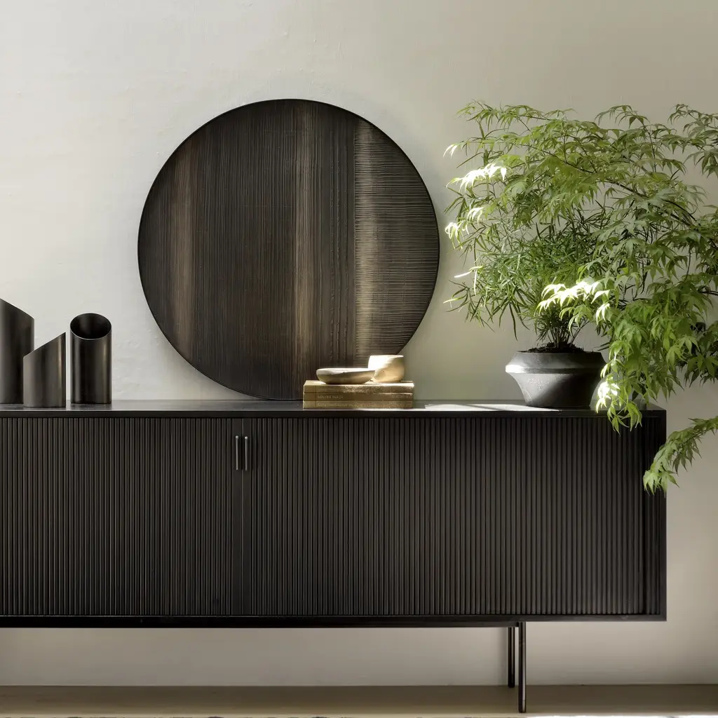 The Roller Max sideboard offers functional storage in an eye-catching design. Featuring sliding doors, adjustable shelving and seamlessly integrated handles, this piece beautifully showcases the collection's stacked wood-stick design. The result is an elegant and sophisticated item for both residential and commercial spaces. Features