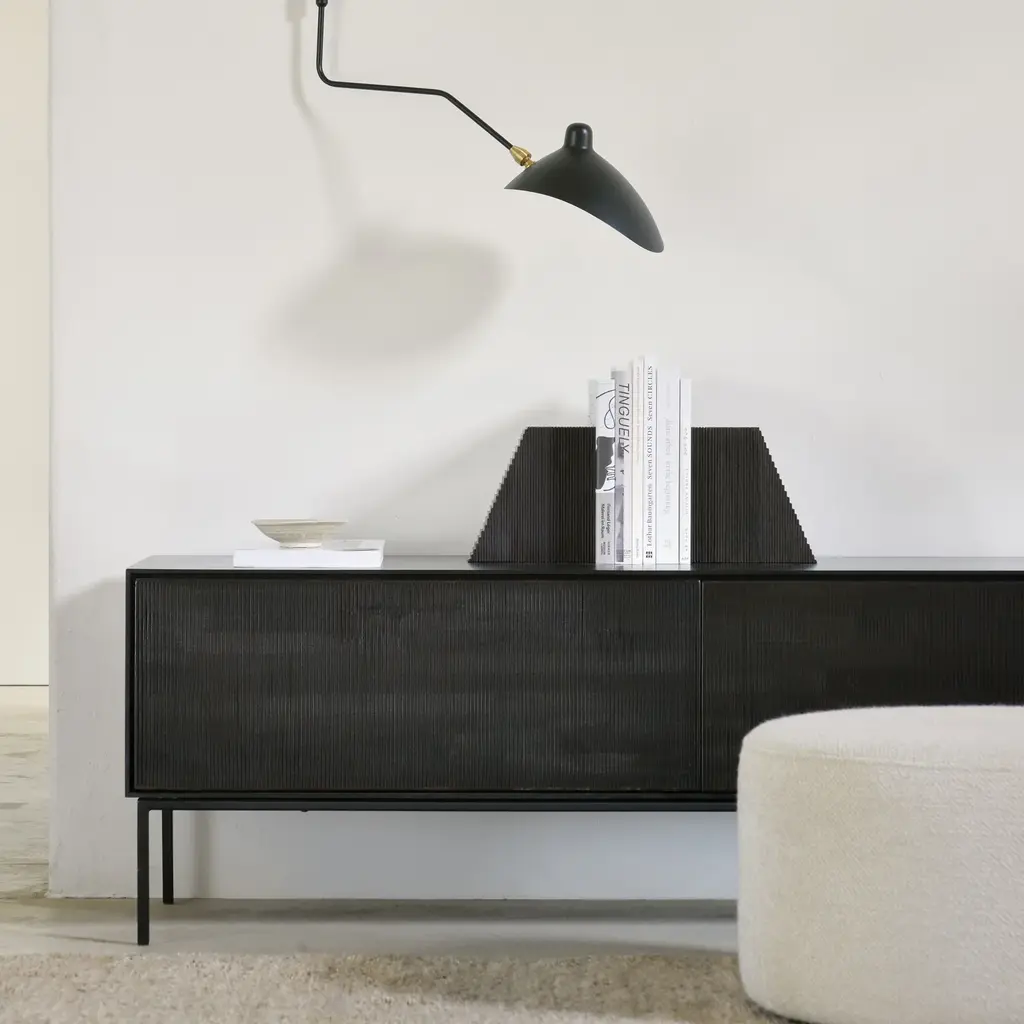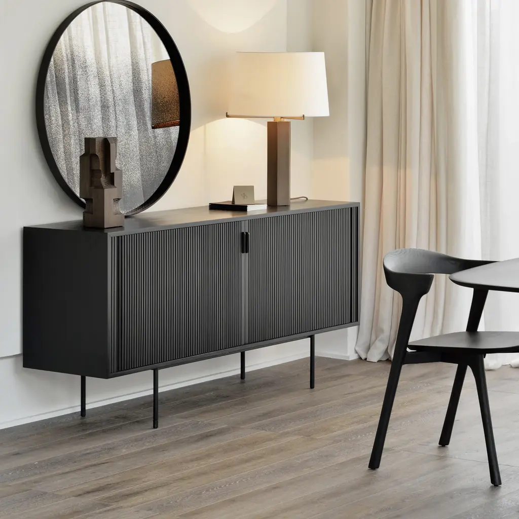 The Roller Max sideboard offers functional storage in an eye-catching design. Featuring sliding doors, adjustable shelving and seamlessly integrated handles, this piece beautifully showcases the collection's stacked wood-stick design. The result is an elegant and sophisticated item for both residential and commercial spaces. Features