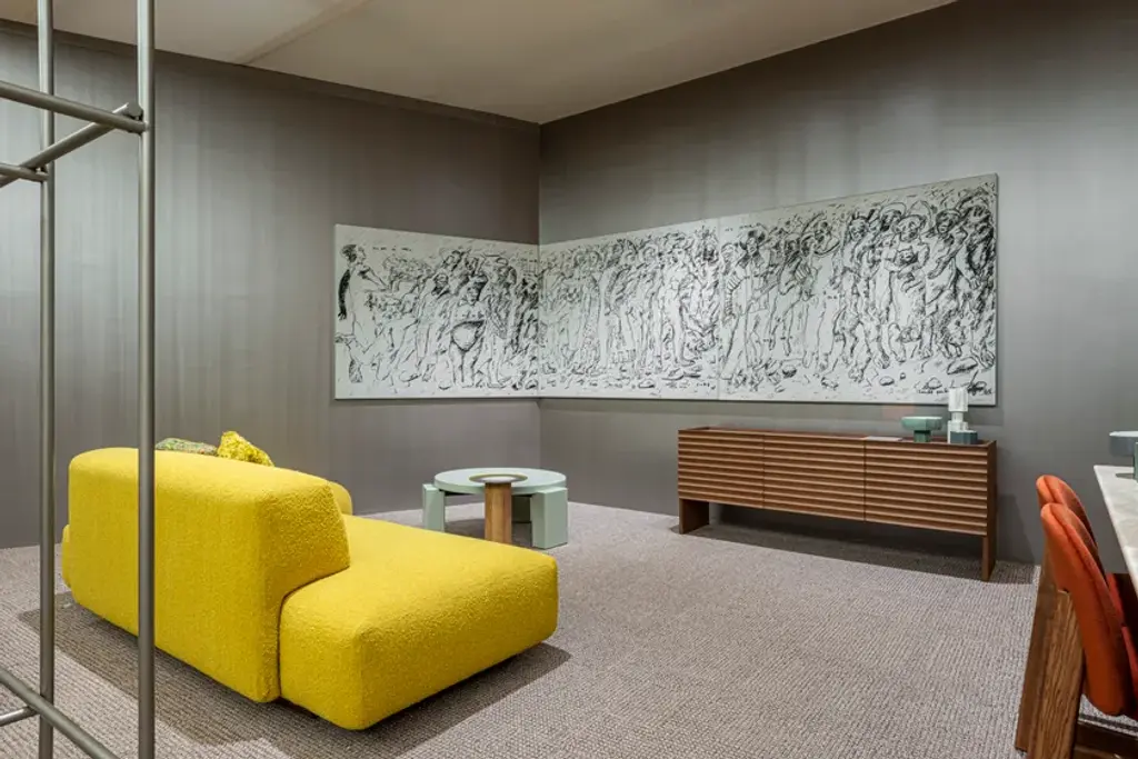 With linear forms and clear-cut symmetries, the Rows collection by Patricia Urquiola is geometrical and minimalist, expressing a refined artistic concept. Doors, side panels and table bases are both formal and decorative. The curved milled edge running the length of the surface is inspired by the nature morte of Amédée Ozenfant, a French writer and painter who founded the Purism movement.The storage series comprises four types of units, including two sideboards, a cabinet and a console table with drawers, designed for the dining and living space. The units are made from particleboard with an oak veneer finish, applied using a membrane press – a process that preserves the continuity of the grain and gives the furniture an artisanal feel, without hiding the industrial method of production.