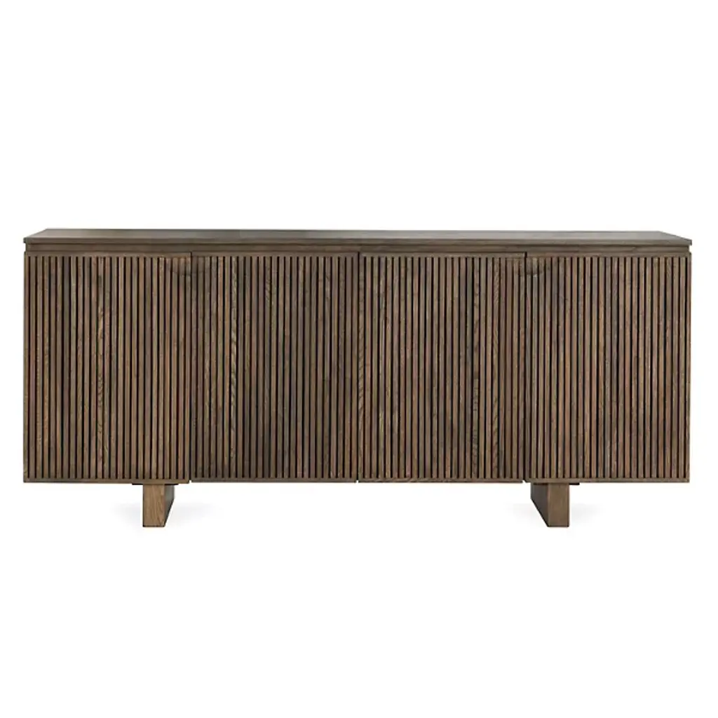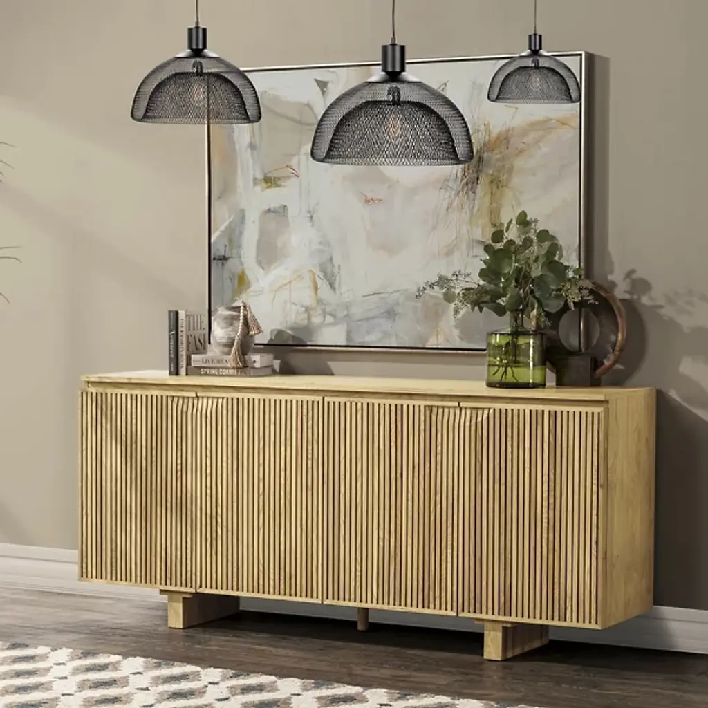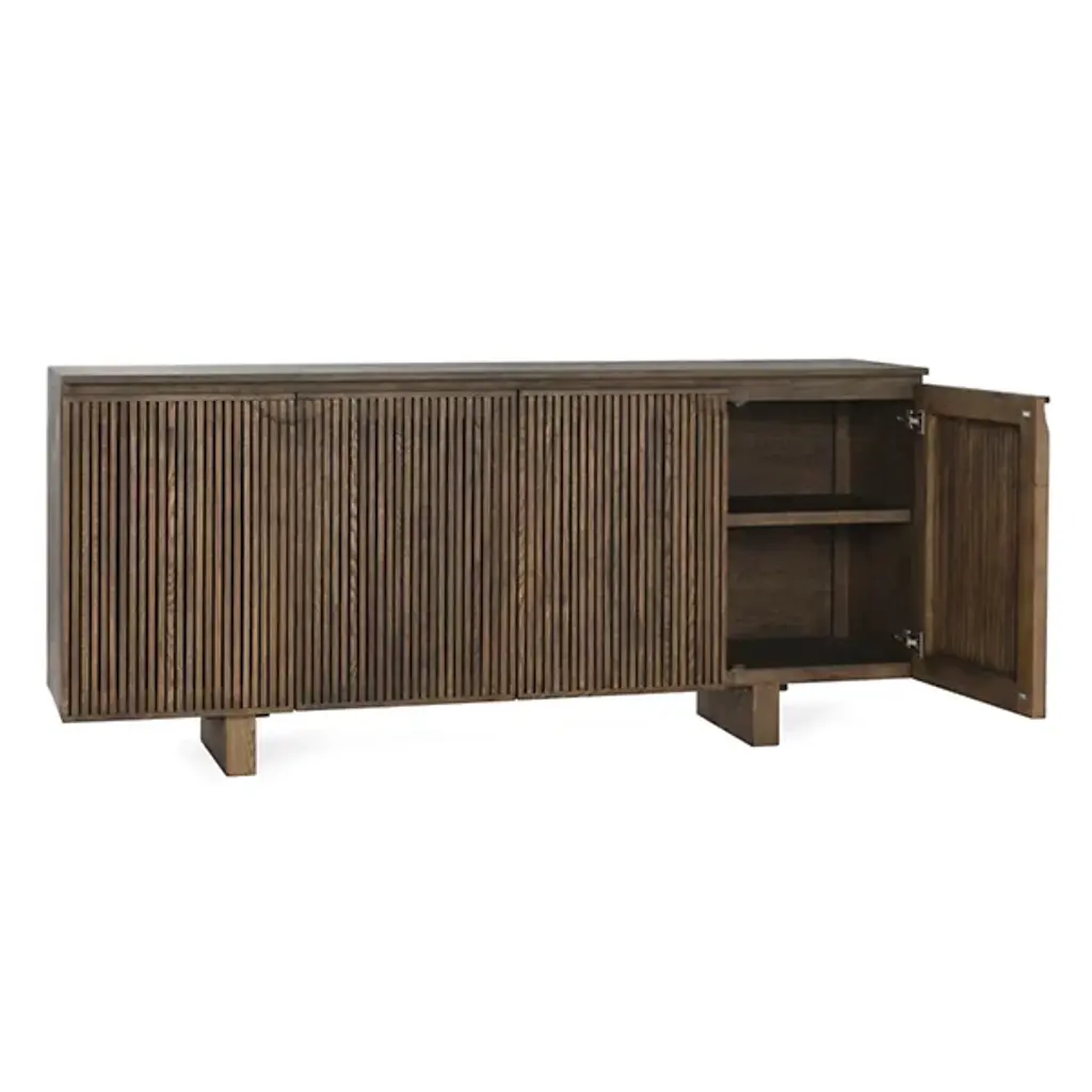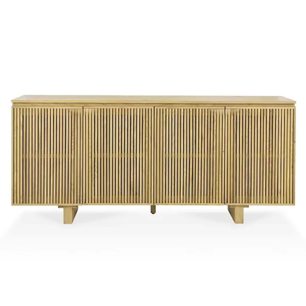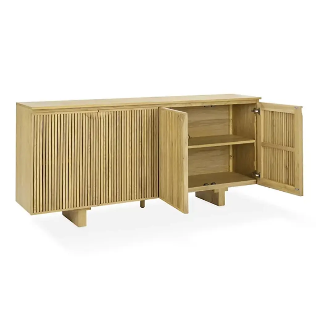 Make a style statement with the linear accent of the Roya Sideboard from Classic Home. A casual piece made in Vietnam from FSC-certified oak veneer, this sophisticated storage design features four soft-closing doors adorned with elegant vertical grooves. The adjustable shelving and magnetic catches combine thoughtful functionality with contemporary design, creating a perfect blend of form and purpose.