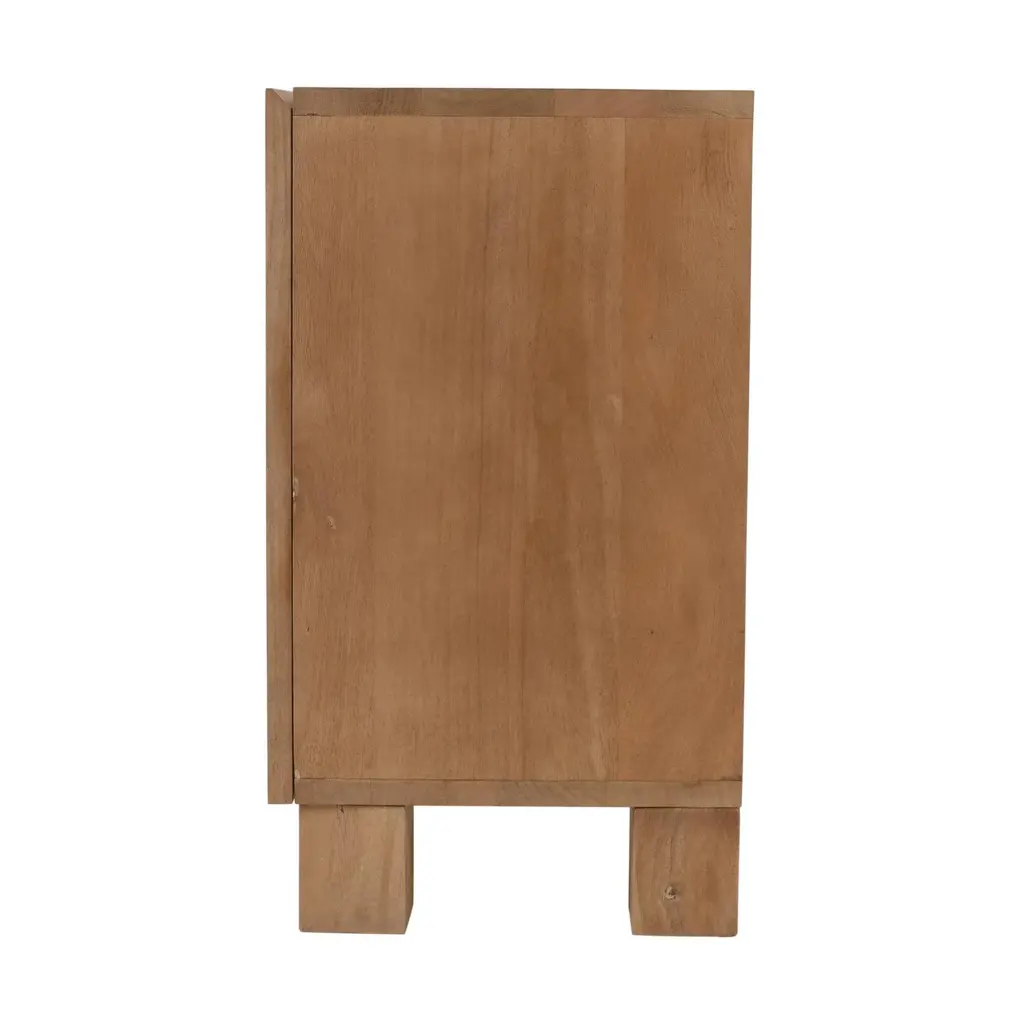 This rustic sideboard is a perfect blend of style and functionality, featuring a beautiful medium wood tone that adds warmth to any room. Crafted from solid mango wood and rubberwood, it boasts a sturdy construction that ensures durability and long-lasting performance.The sideboard has two shelves, providing ample space for storing and displaying your favorite items, from fine china to decorative accents. Four doors conceal storage compartments, keeping your belongings organized and out of sight. The concealed storage style helps maintain a clutter-free environment, making it ideal for busy households.One of the standout features of this sideboard is its wire management capability, allowing you to keep cords and cables neatly organized and hidden from view. This is especially useful for homes with multiple devices and gadgets, as it helps reduce visual clutter and creates a more streamlined look.The rustic design style of this sideboard gives it a unique, charming character that complements a variety of decor styles. The brown color name adds a sense of earthiness, making it a great fit for those who appreciate natural, organic aesthetics. Whether you're looking to enhance your dining room, living room, or entryway, this sideboard is sure to become a beautiful and functional centerpiece.