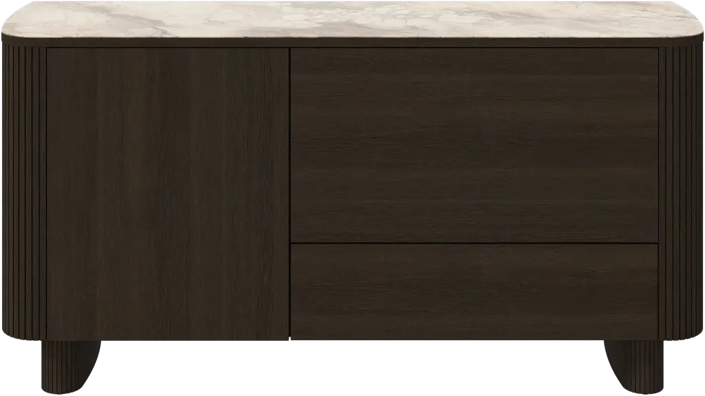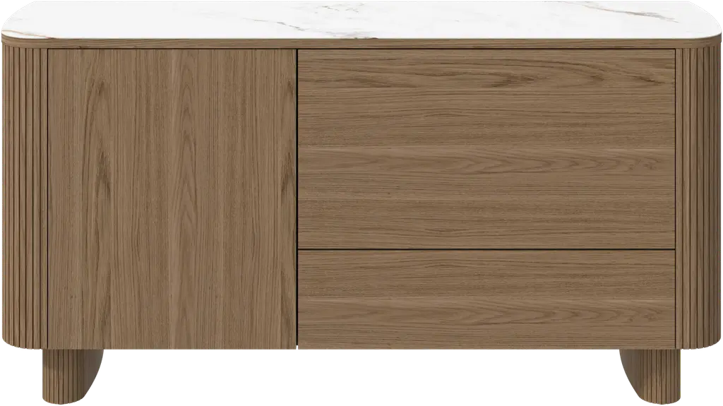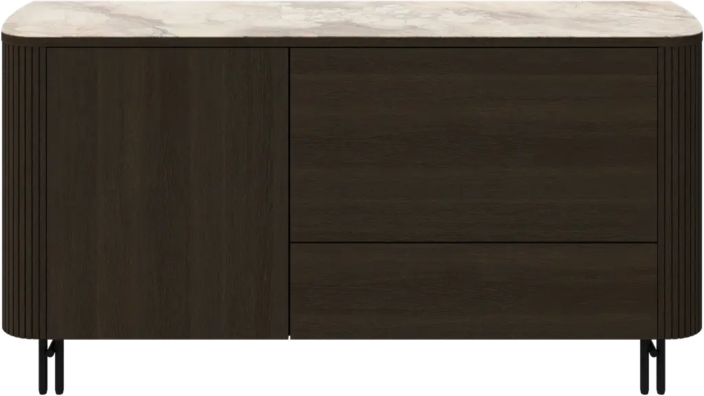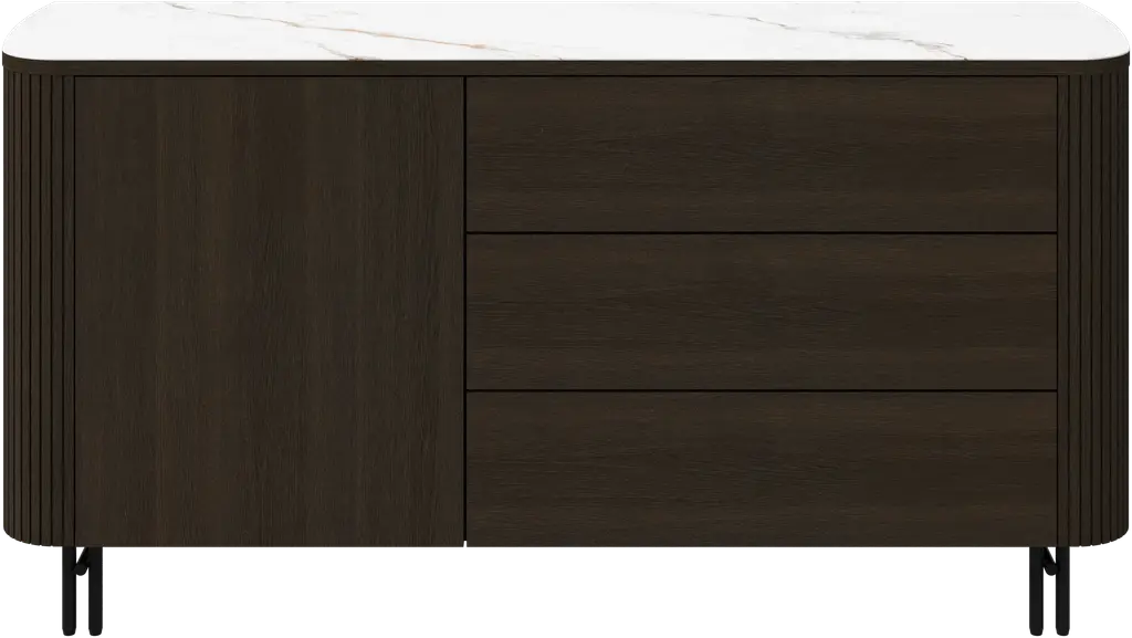 Elevate your living space with the Santiago sideboard, a harmonious blend of mid-century Danish design and modern functionality. Designed by Morten Georgsen, its sleek silhouette and organic curves are complemented by three spacious drawers, providing ample storage for your essentials. Customise the sideboard to your preference with a choice of luxurious ceramic or wood tops, and select either wooden legs for a cohesive look or matt black metal legs for a contemporary contrast. Available in various sizes to seamlessly fit your space.