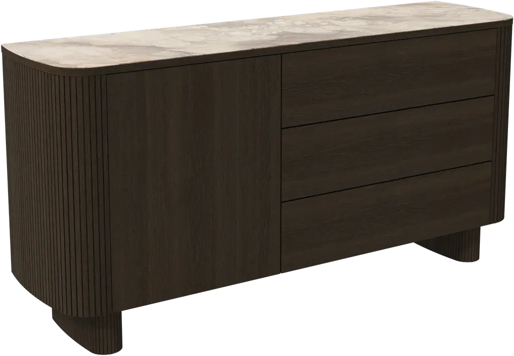 Elevate your living space with the Santiago sideboard, a harmonious blend of mid-century Danish design and modern functionality. Designed by Morten Georgsen, its sleek silhouette and organic curves are complemented by three spacious drawers, providing ample storage for your essentials. Customise the sideboard to your preference with a choice of luxurious ceramic or wood tops, and select either wooden legs for a cohesive look or matt black metal legs for a contemporary contrast. Available in various sizes to seamlessly fit your space.