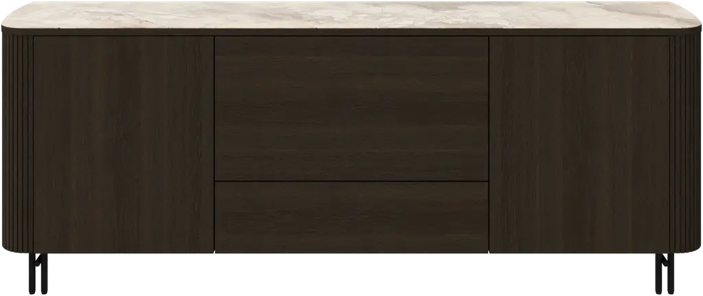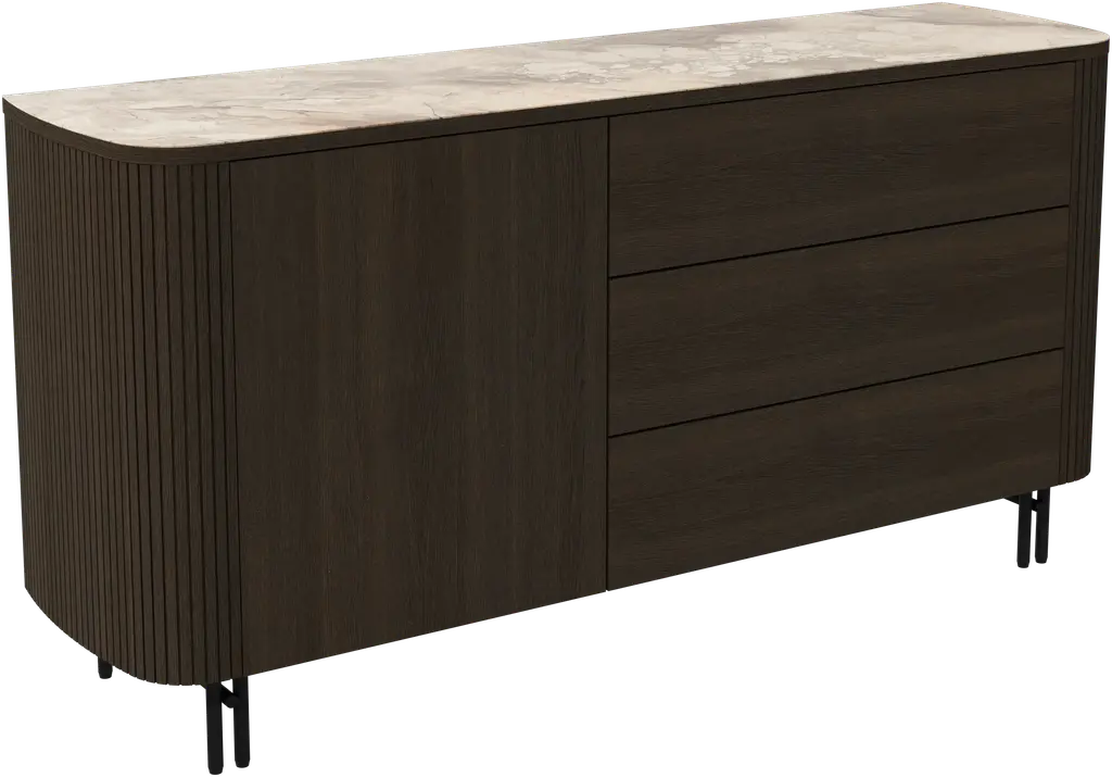 Elevate your living space with the Santiago sideboard, a harmonious blend of mid-century Danish design and modern functionality. Designed by Morten Georgsen, its sleek silhouette and organic curves are complemented by three spacious drawers, providing ample storage for your essentials. Customise the sideboard to your preference with a choice of luxurious ceramic or wood tops, and select either wooden legs for a cohesive look or matt black metal legs for a contemporary contrast. Available in various sizes to seamlessly fit your space.