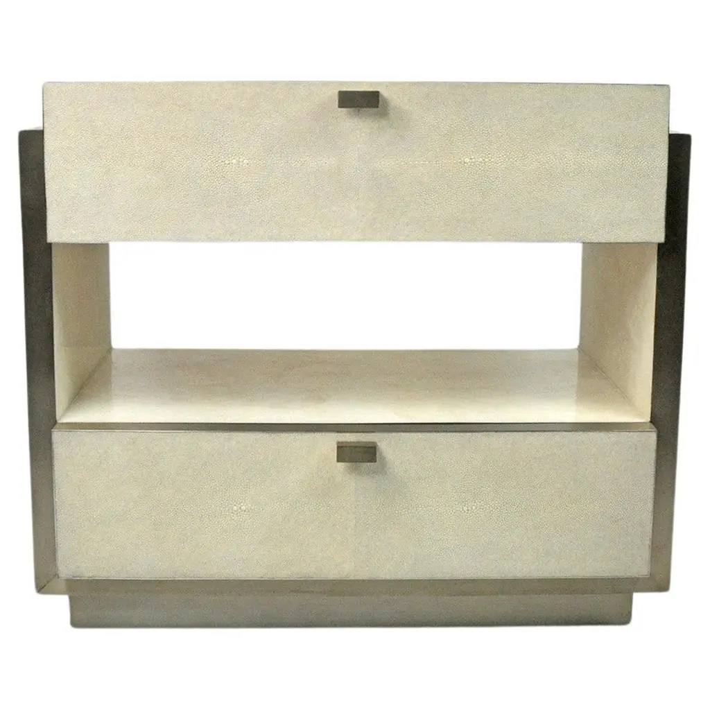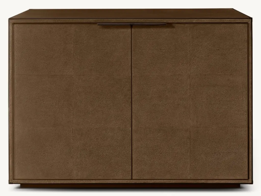 A 1970s interpretation of French Art Deco design, our bedroom collection from the Van Thiels celebrates the marriage of two eras. With elegant materials and a refined form, it's clad in rich shagreen-embossed leather with metal trim detail. SHOP THE ENTIRE COLLECTION