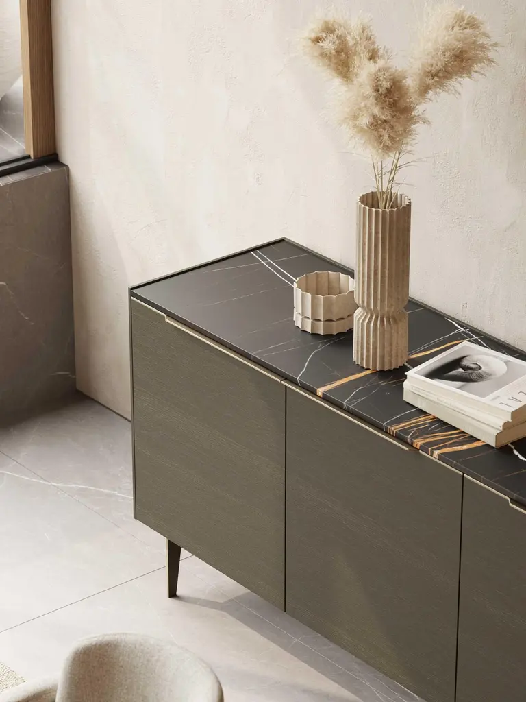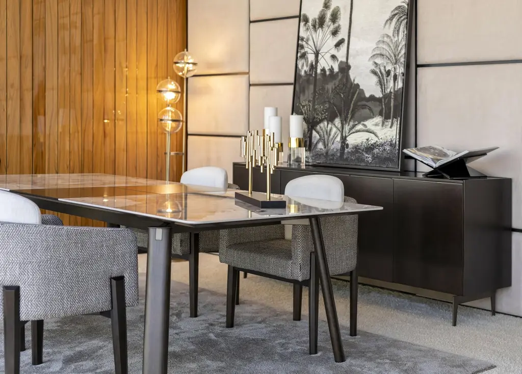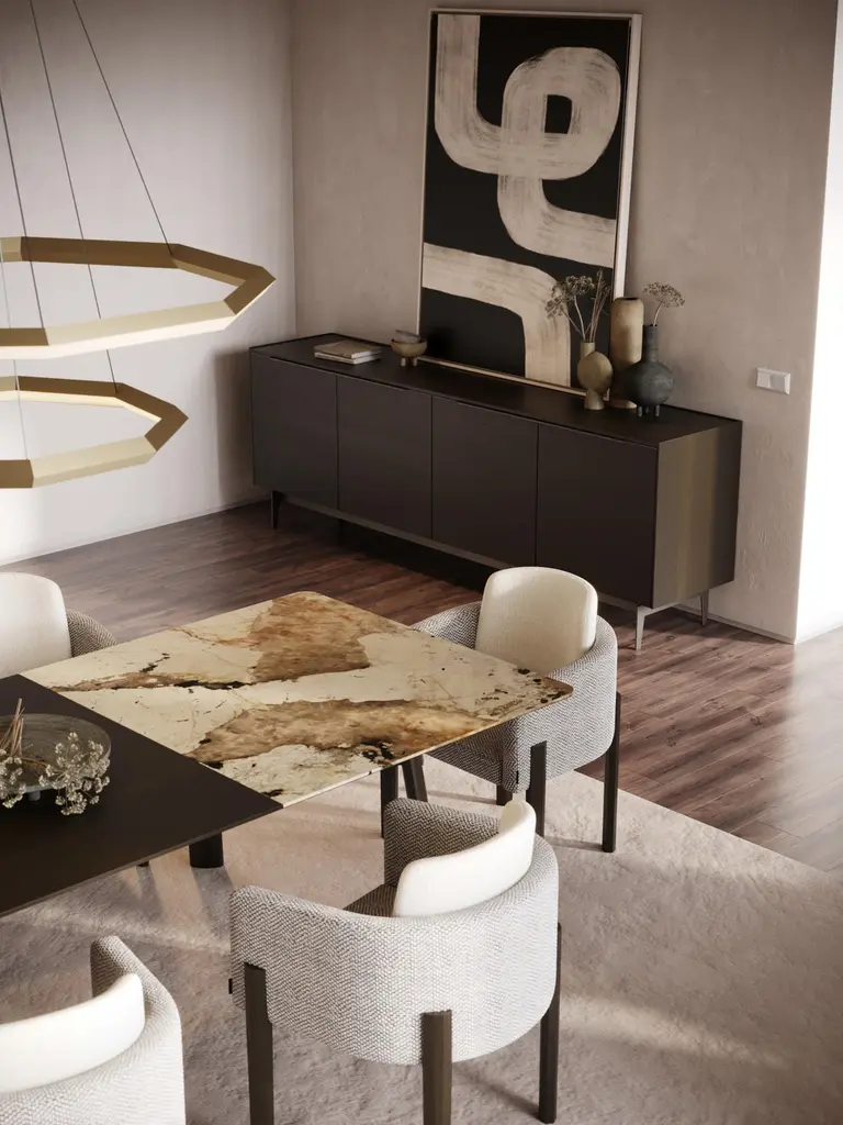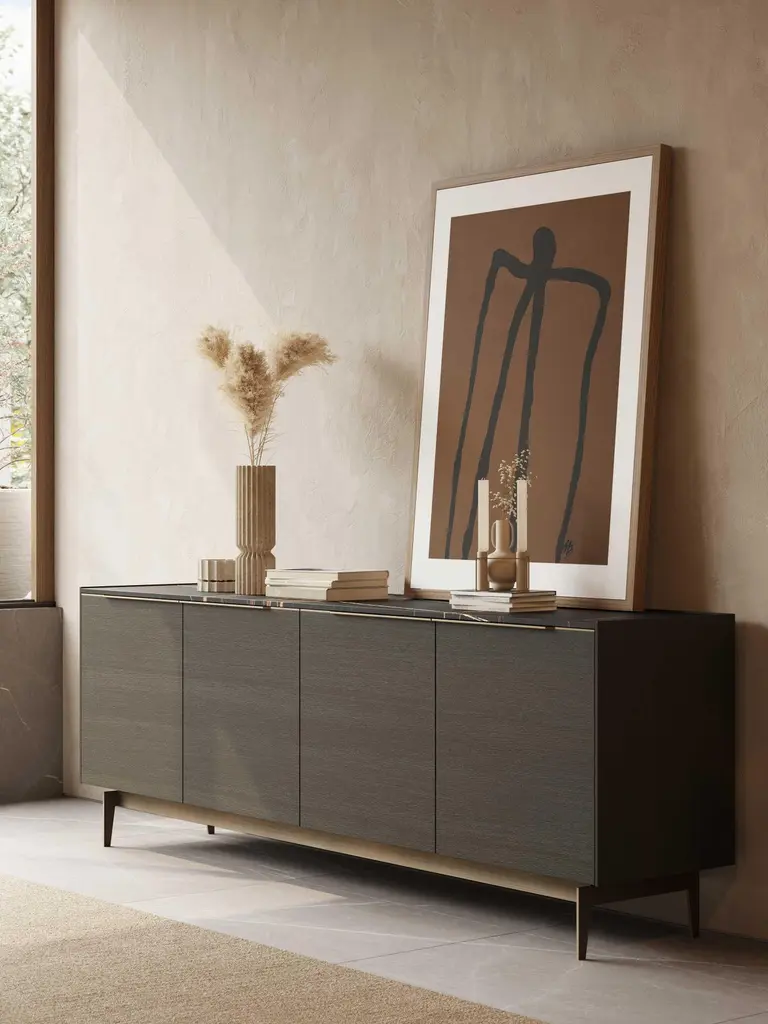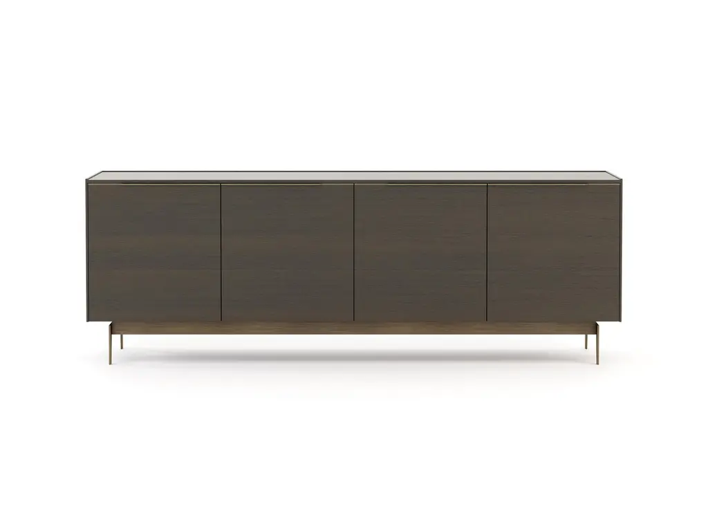 In a Haussmanian inspiration, you will find in this collection the noblest characteristics of this style. A discrete colour palette, between off-white and white, an avantgarde atmosphere that emphasises the nature of the materials, the simplicity of the designs and the sophistication of unlikely combinations. Our brand now arrives to bring out innovation, style and luxury in the most iconic design pieces.An excellent support for the dining area, the Landform Sideboard in a dark oak frame brings out its beauty in the fluidity of the design conceived to be practical and functional, while at the same time elevating the decor of the room. The brushed bronze metal base features the elegant signature of Stylish Club in the dining room. A beautiful piece to add to your elegant dining room. The oak frame gives this piece strength, high quality and exquisiteness visible to the eye of true interior design lovers. Subtle luxury.As the product can be personalised, the image of the presentation is merely illustrative.NotesLacquered metal or others metals - Price on requestPossibility to customize top with marble or glass - Price on request