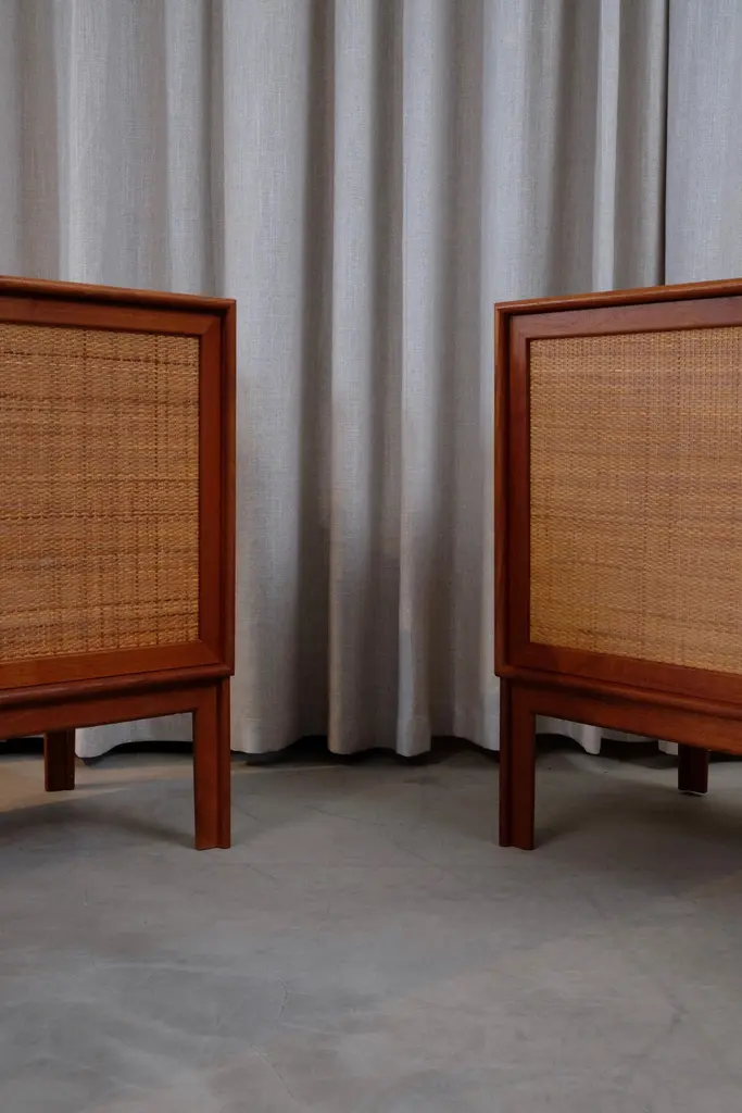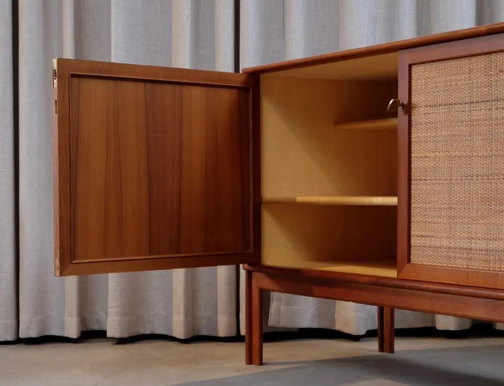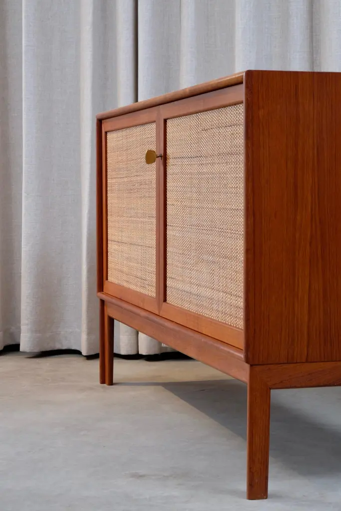 Teak and rattan. Model Norrland produced by Bjästa Möbelfabrik, Sweden, 1960s.Excellent vintage condition with minor signs of usage.Set of 3 available. Please note: listed price is for (1) one sideboard.