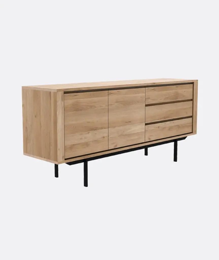 Straightforward and robust with decisive lines. That sums up the Shadow sideboard, designed by Alain van Havre. By putting the smooth black metal legs underneath, and giving the design room to breathe, it is elevated it to new heights.