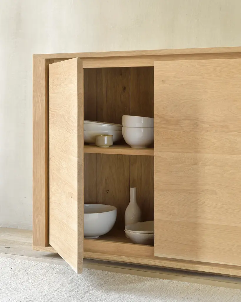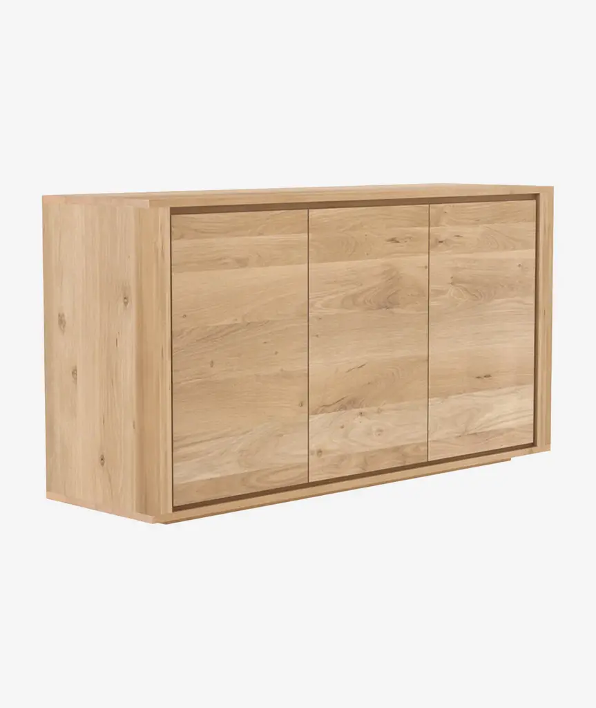 Straight forward and robust with decisive lines, the oak Shadow side table with two doors is a simple solution to your storage needs.