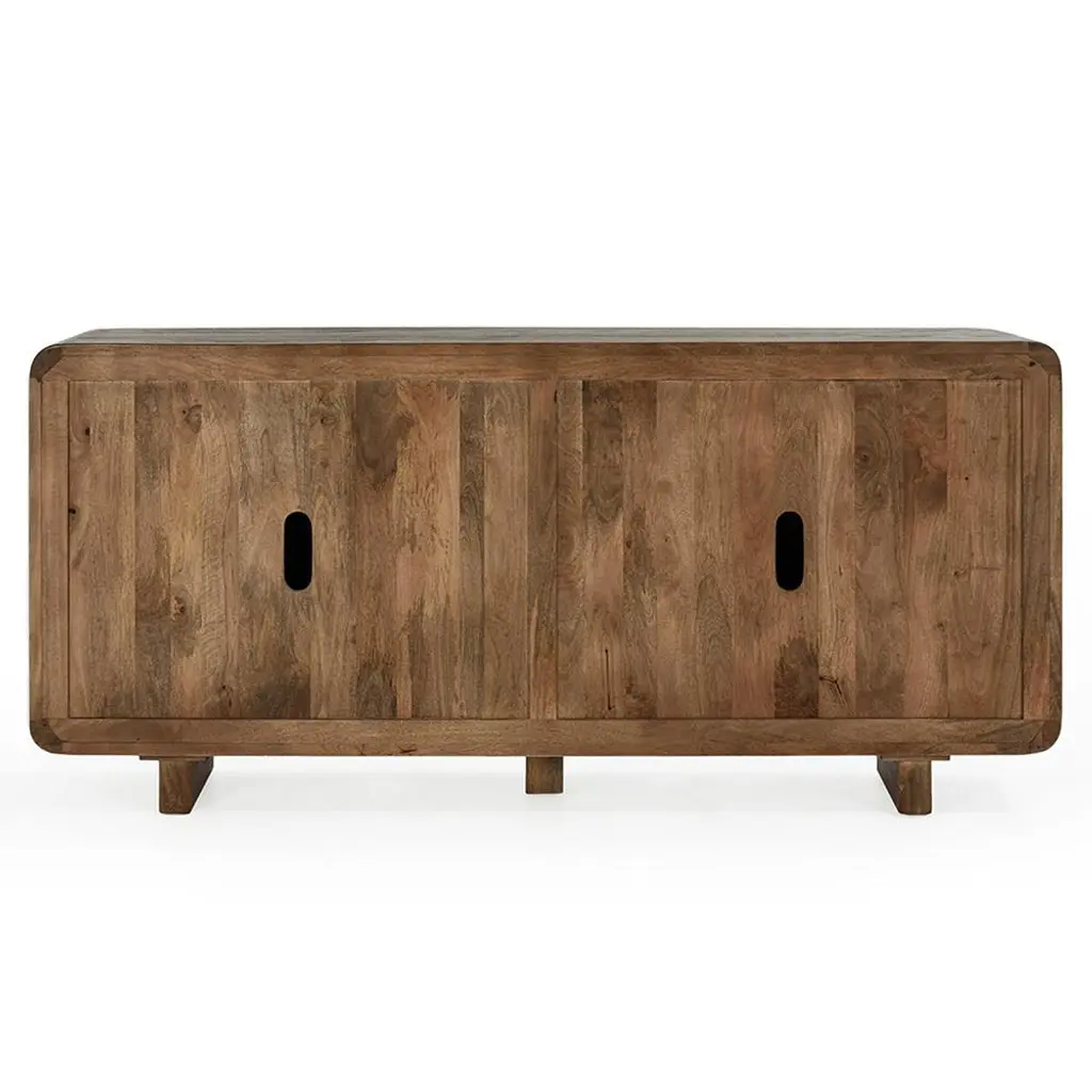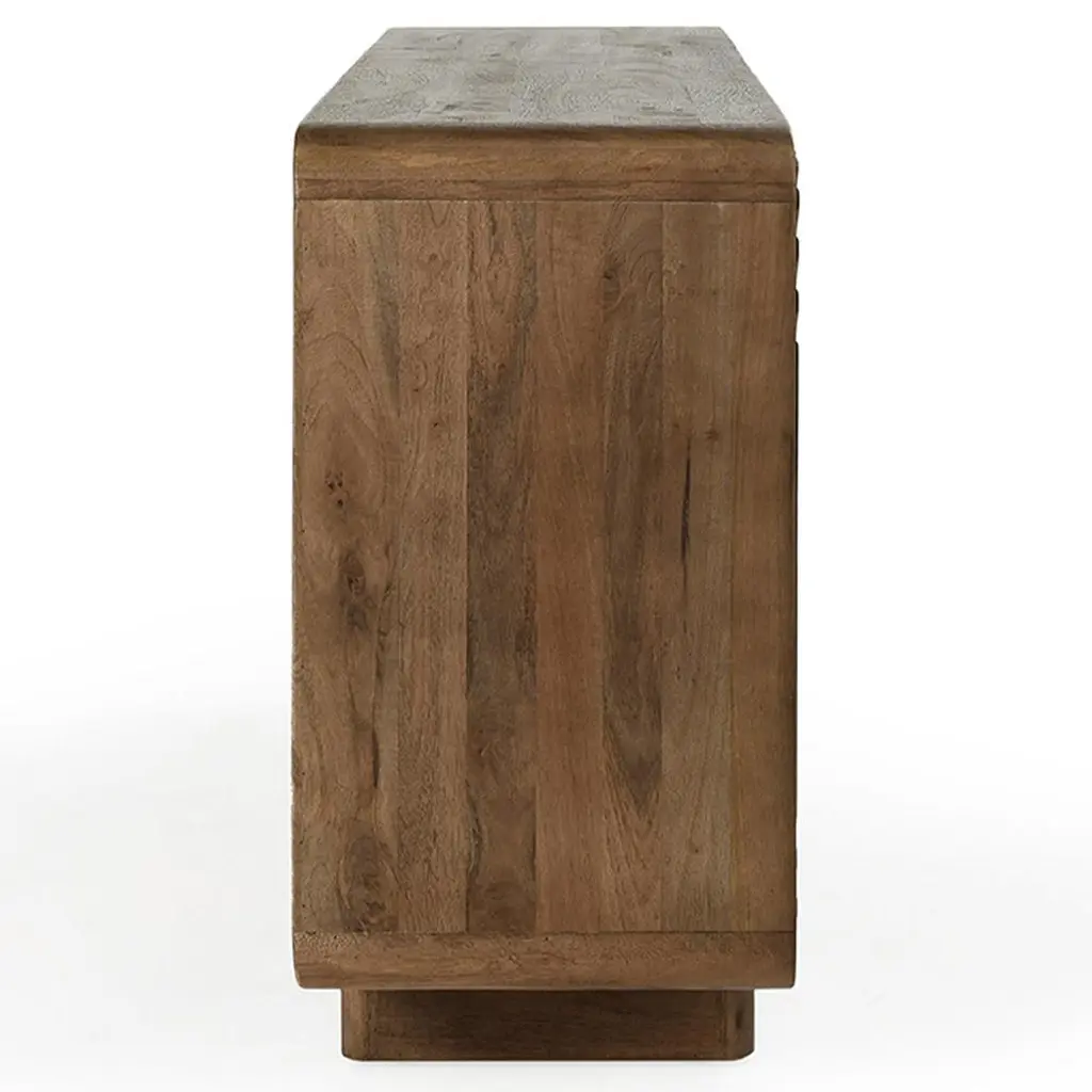Sherwood Mid Century Modern Brown Mango Wood Patterned 4 Door Sideboard