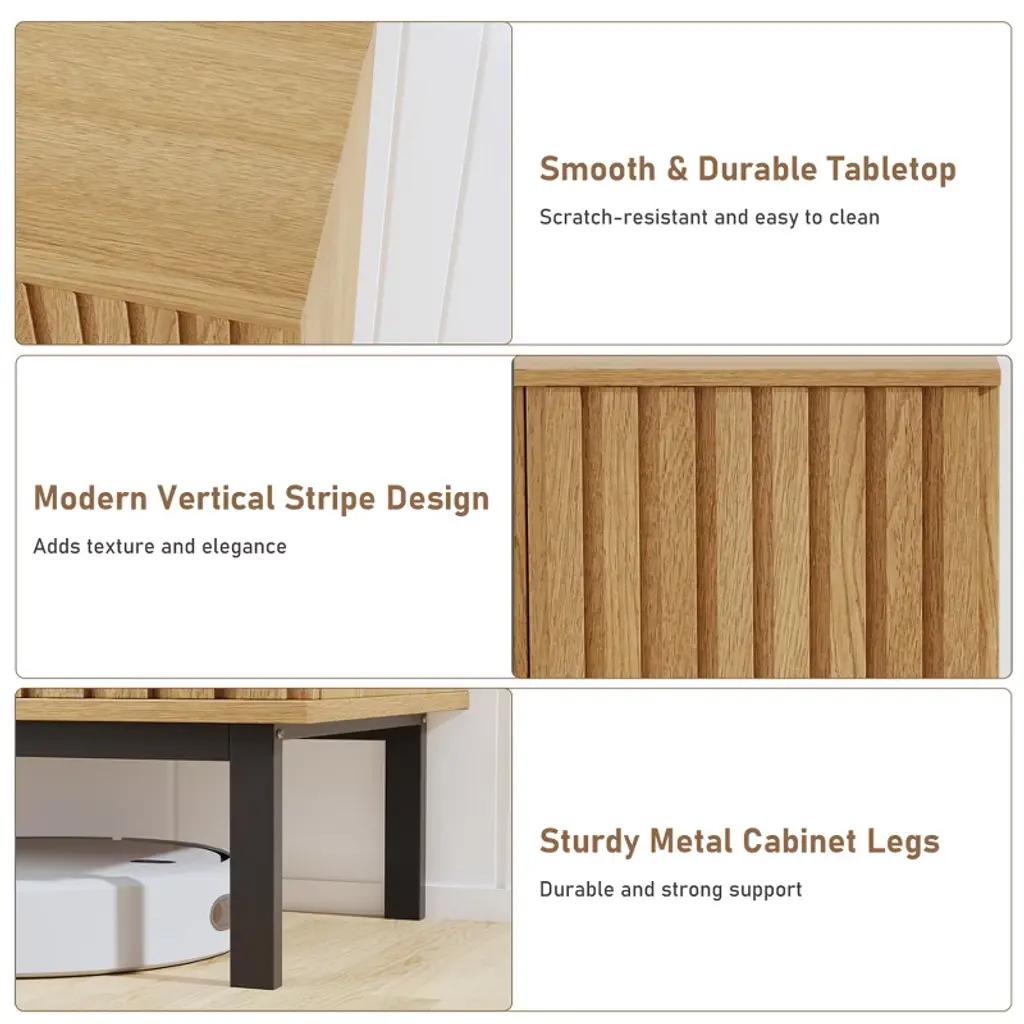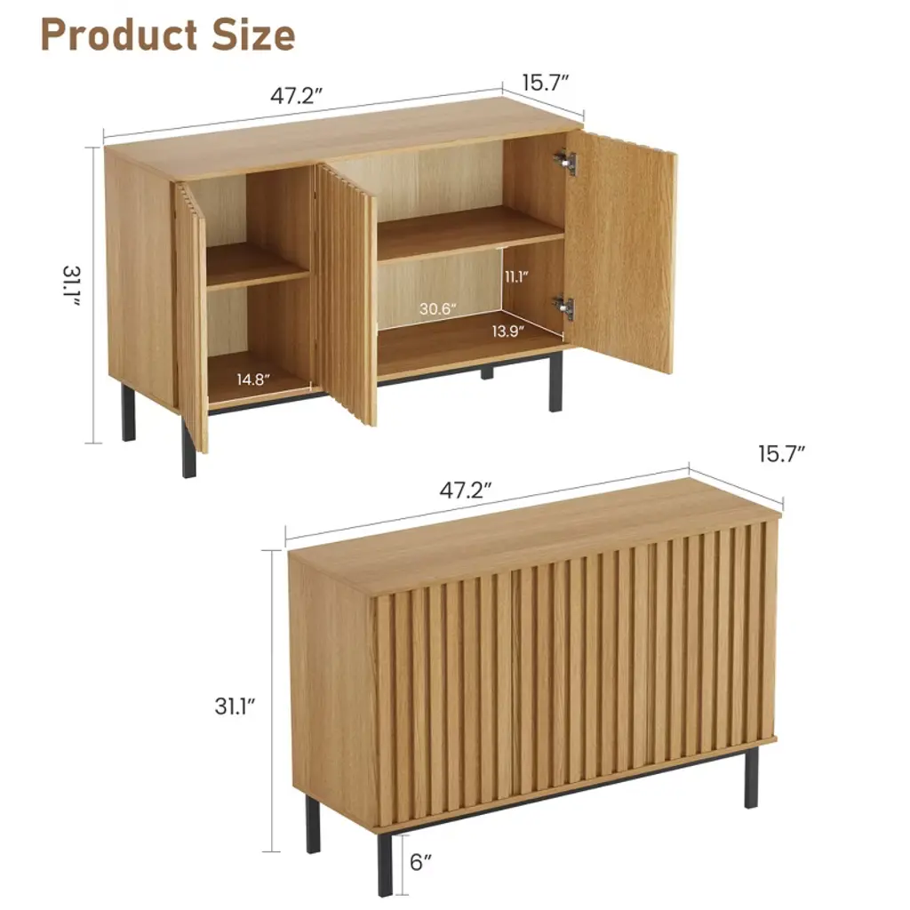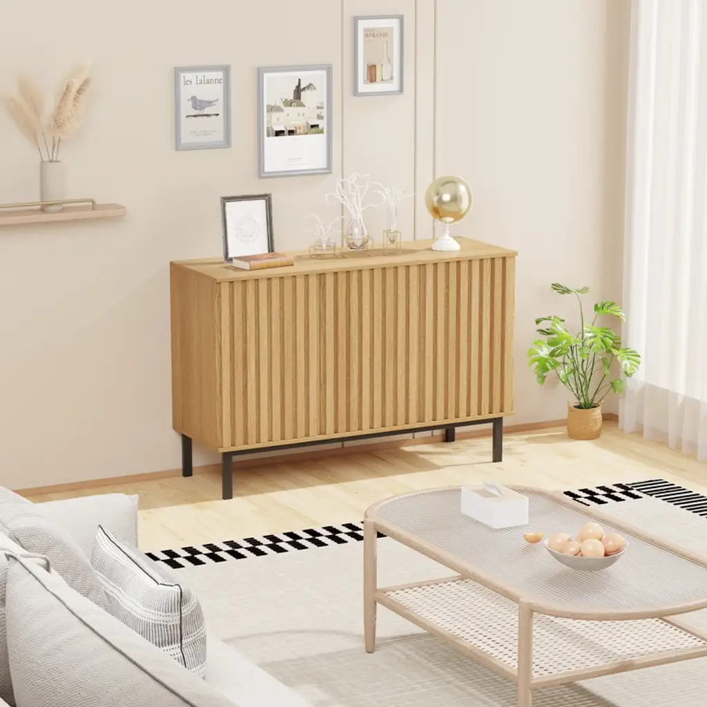 Highlights at a Glance:Modern fluted panel designAdjustable, spacious shelvingDurable engineered wood & metal legsMultipurpose for kitchen, dining, or entrywayEffortless assembly and organizationSpecification:Material: Engineered Wood, MetalColor: Natural Wood ColorPacking List:1 x Buffet Cabinet1 x Accessory Kit1 x Instruction ManualFriendly Note:Please follow the assembly instructions carefully to ensure proper installation and stability.Clean with a soft, damp cloth. Avoid using harsh chemicals or abrasive materials to protect the finish