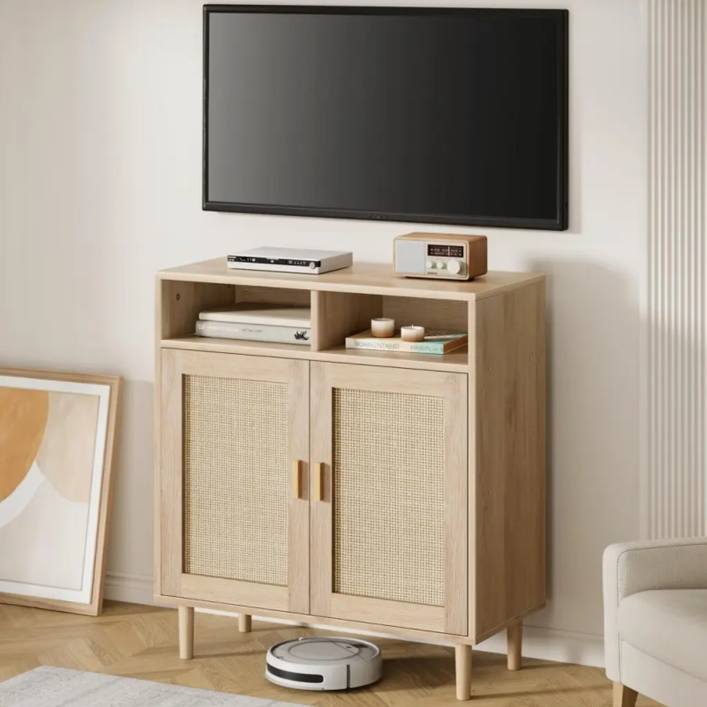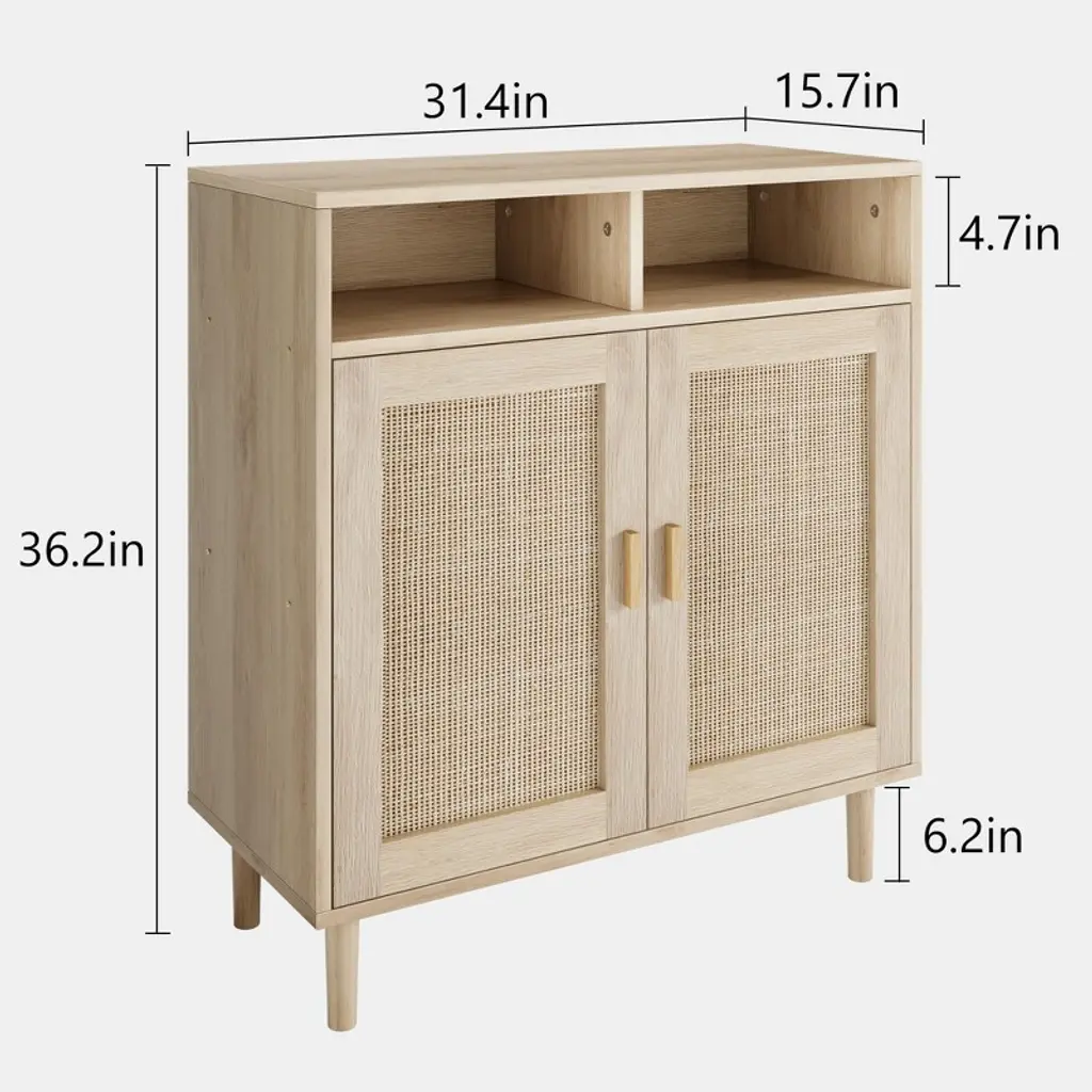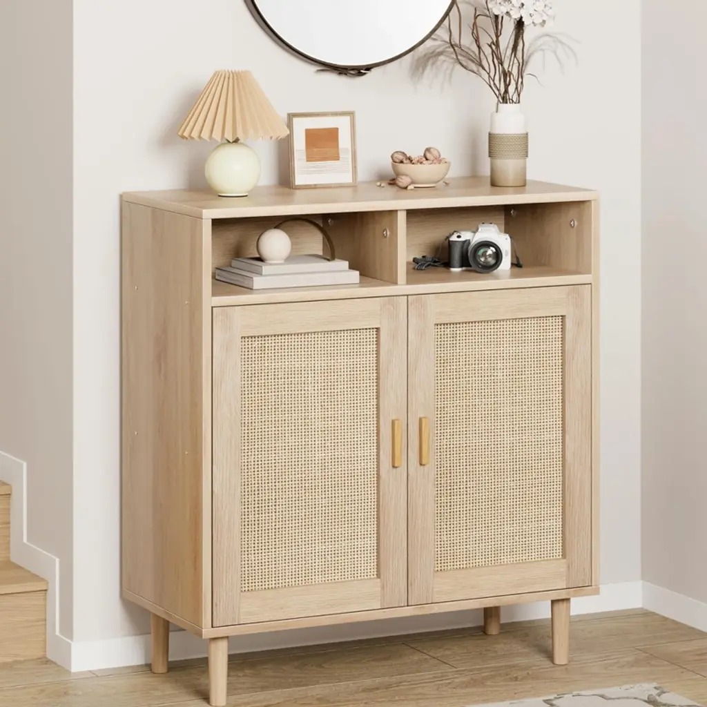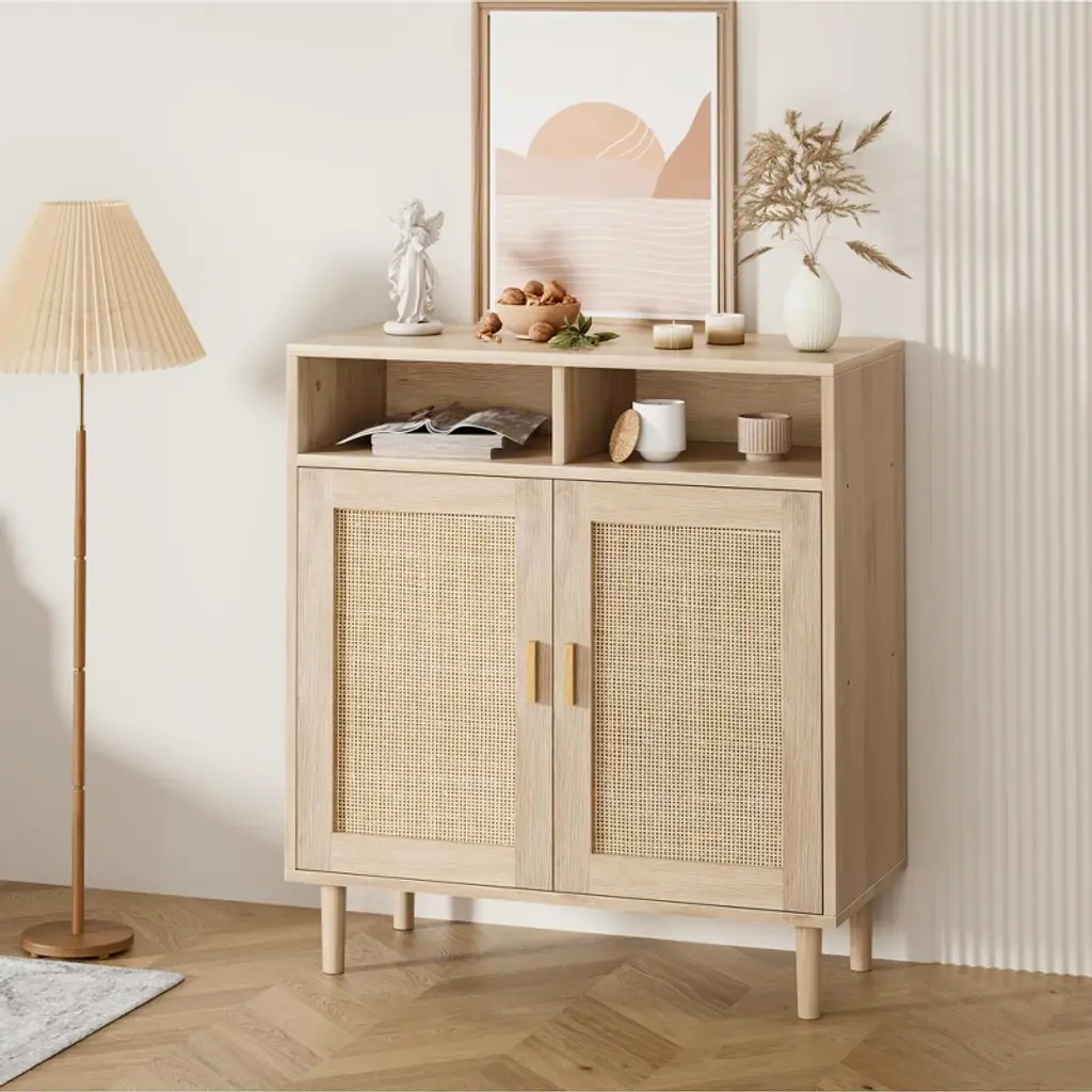 Sideboard Buffet Storage Cabinet, Rattan Kitchen Cabinet With 2 Doors/shelf