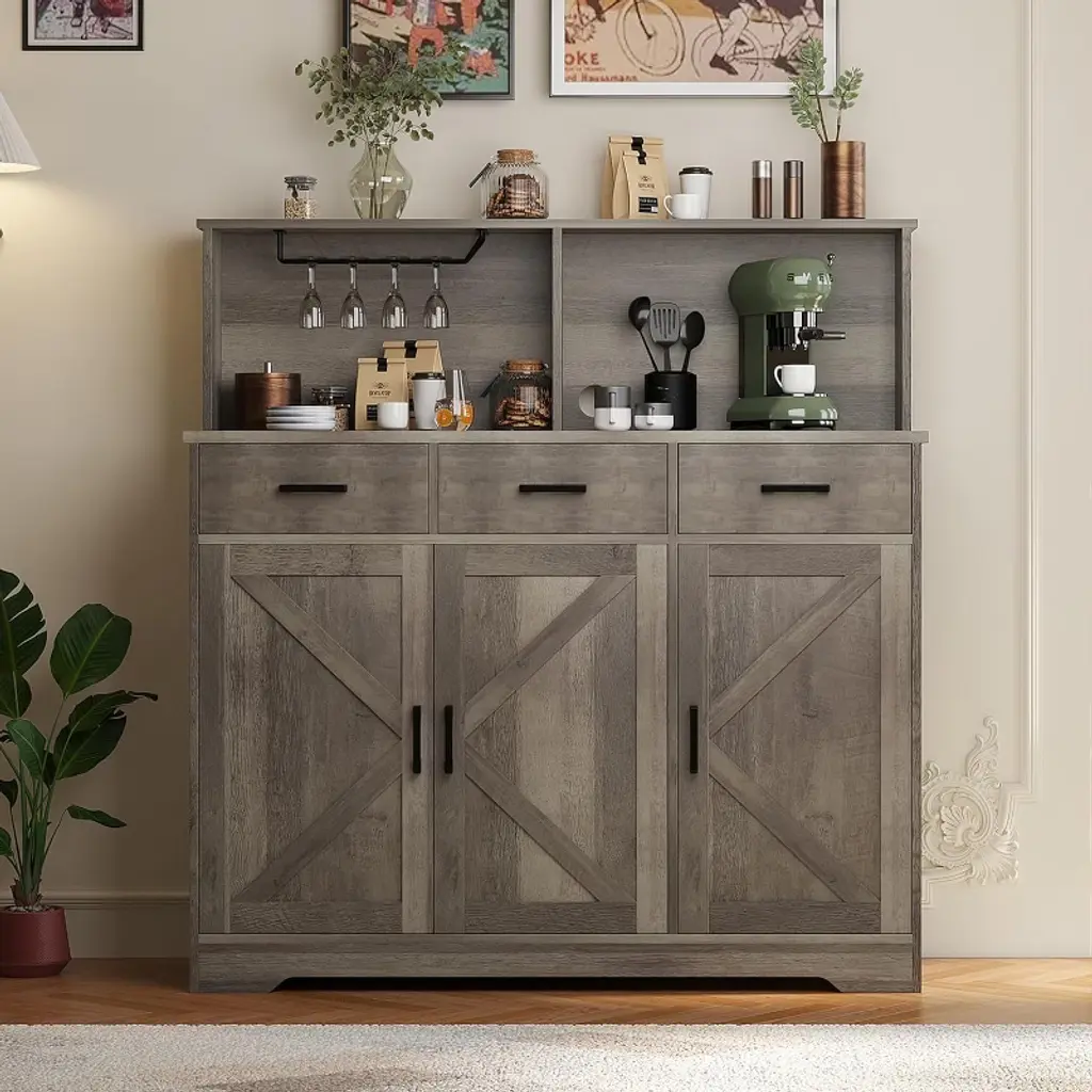 Sideboard Buffet With Microwave Stand, Buffet Storage Cabinet With Drawers, Wood Coffee Bar Cabinet
